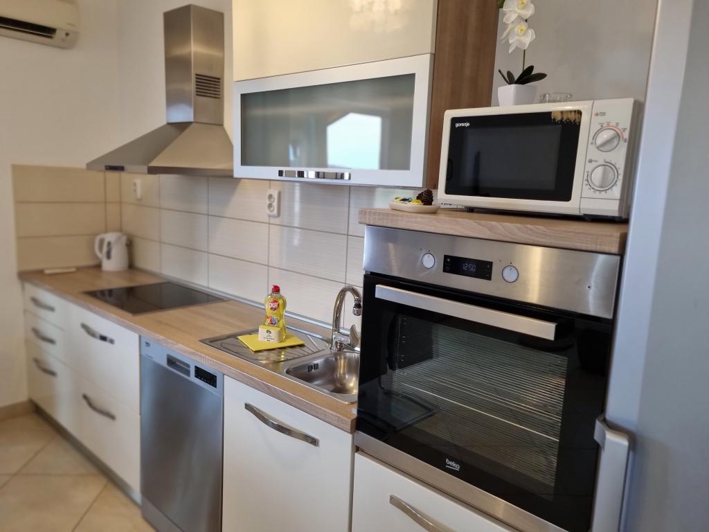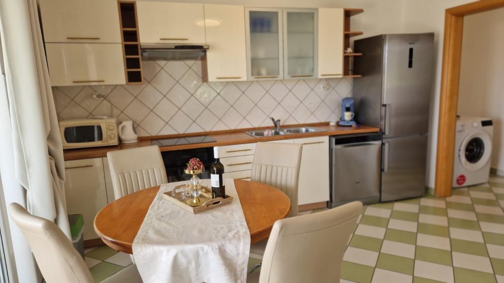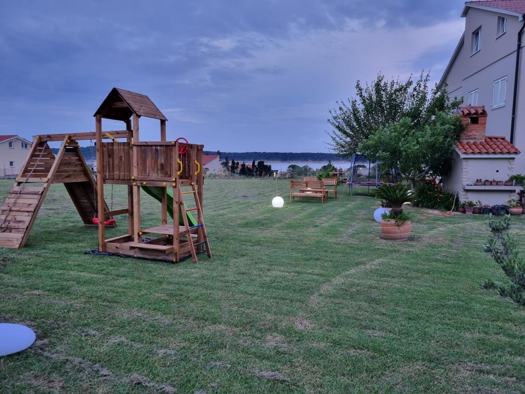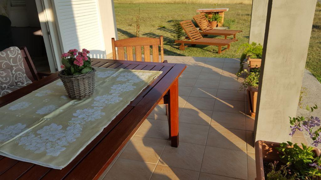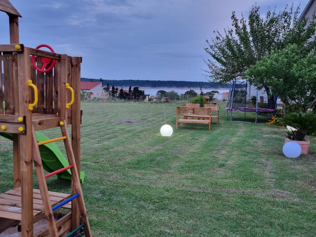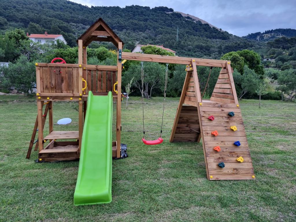 Pięknie urządzone apartamenty z całym wyposażeniem ułatwiającym wakacje. Dom otoczony jest dużym ogrodem z placem zabaw dla dzieci i grillem. Każdy apartament posiada oddzielny taras z widokiem na morze. Dom znajduje się 400 m od morza i najbliższej plaży.