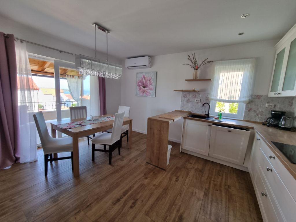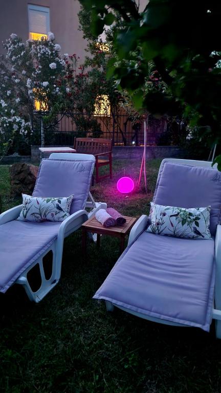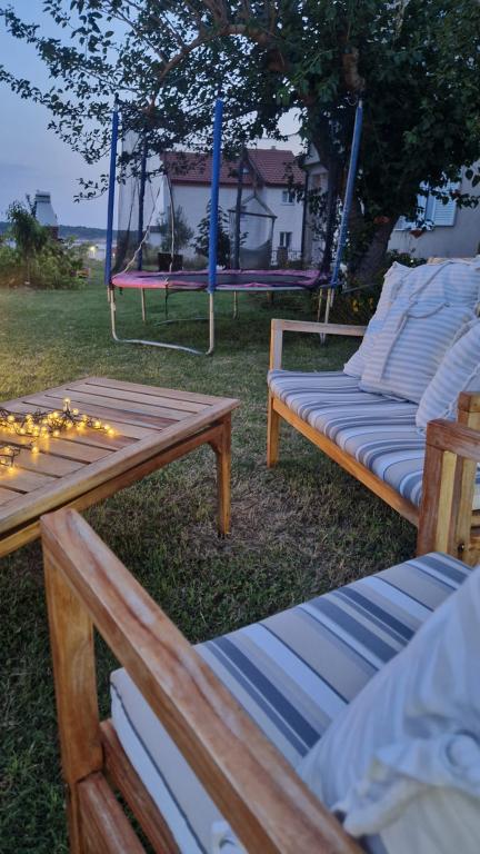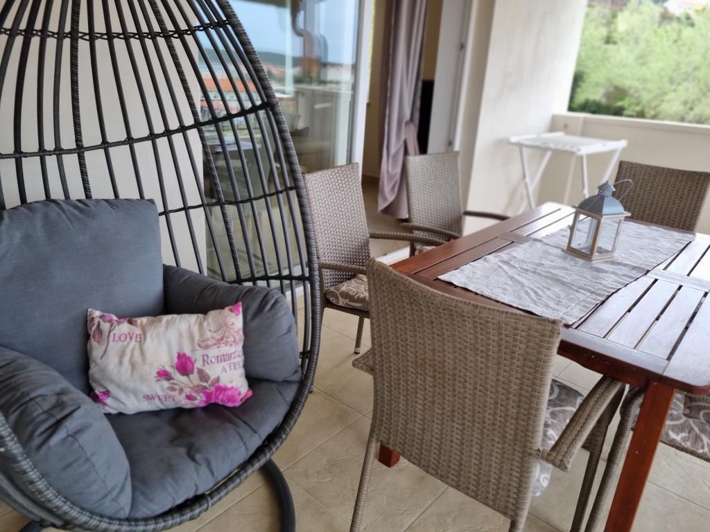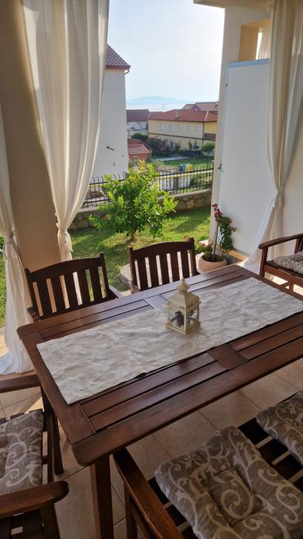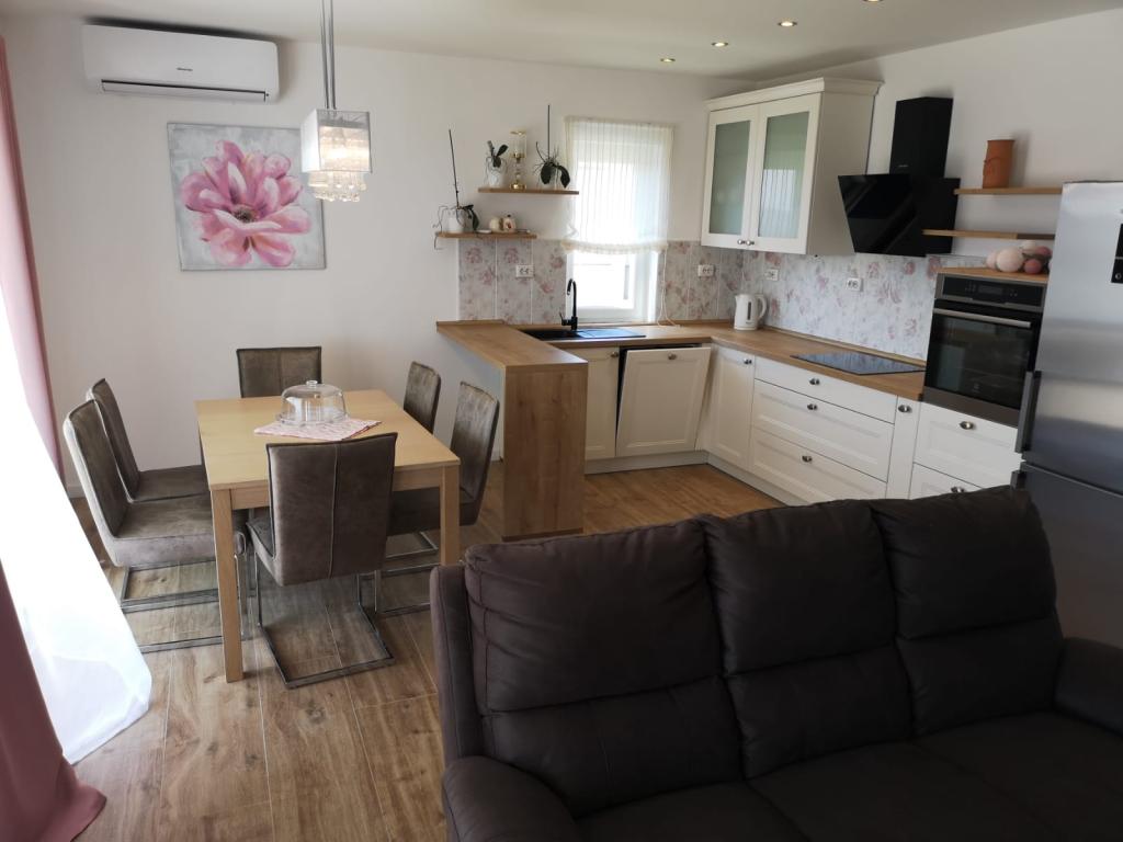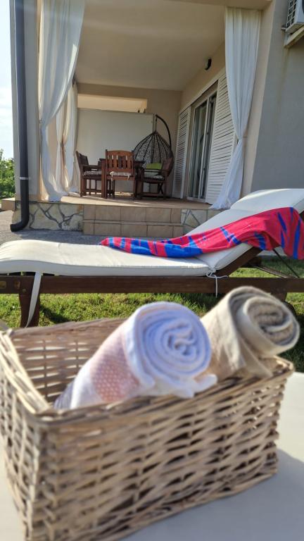 Pięknie urządzone apartamenty z całym wyposażeniem ułatwiającym wakacje. Dom otoczony jest dużym ogrodem z placem zabaw dla dzieci i grillem. Każdy apartament posiada oddzielny taras z widokiem na morze. Dom znajduje się 400 m od morza i najbliższej plaży.