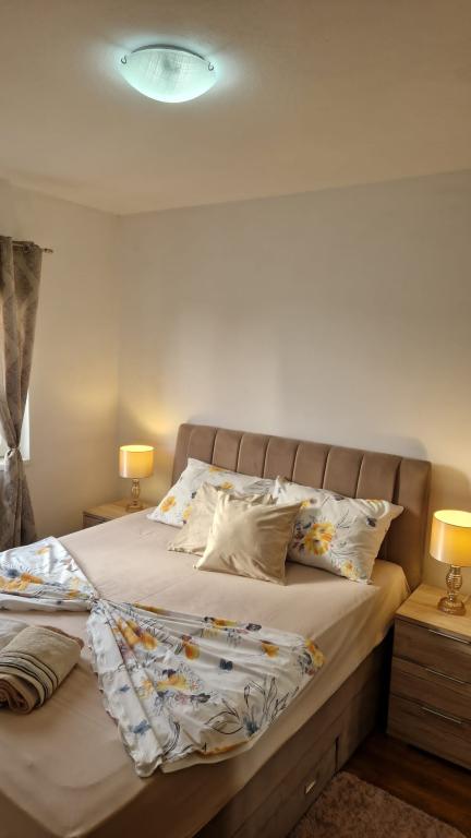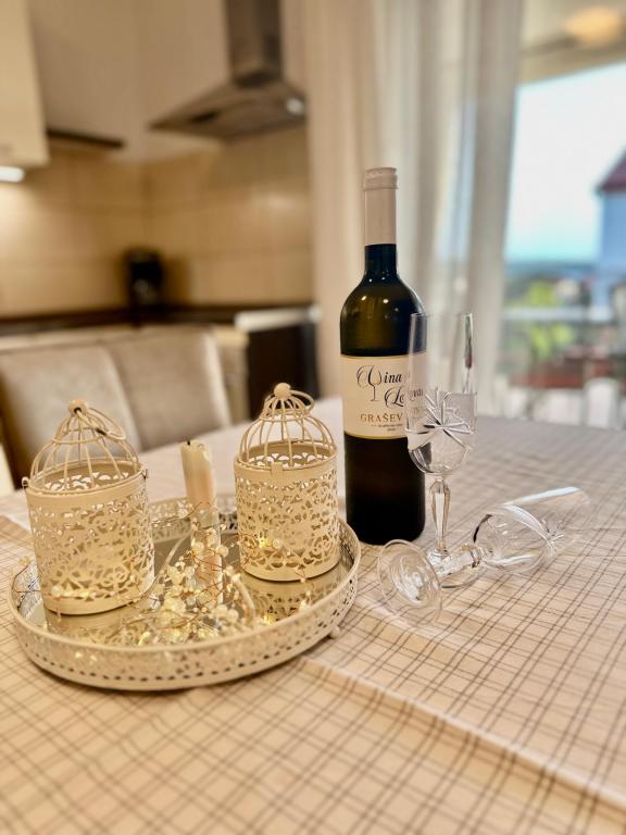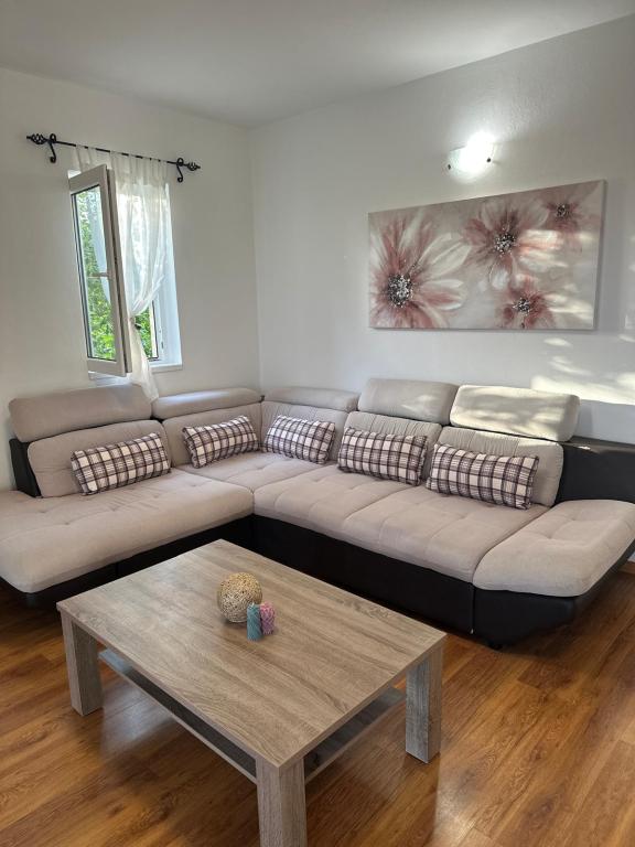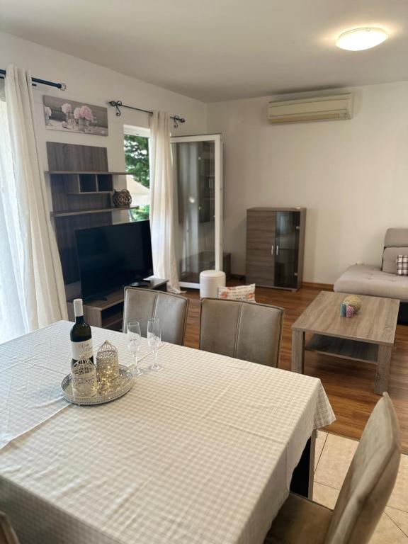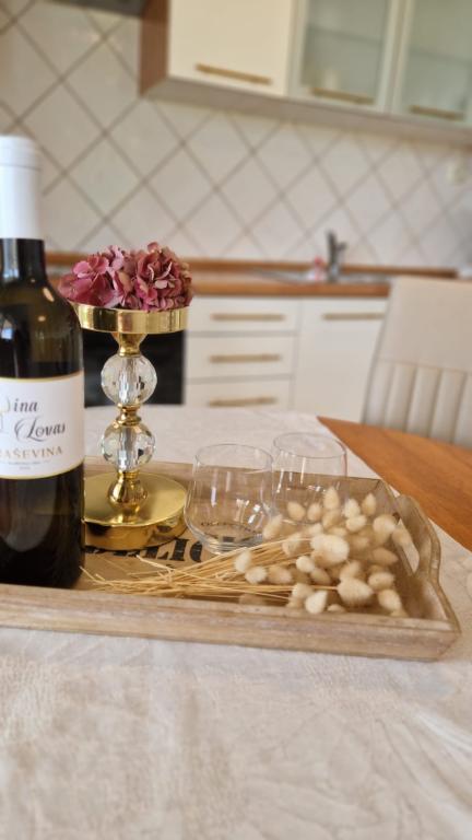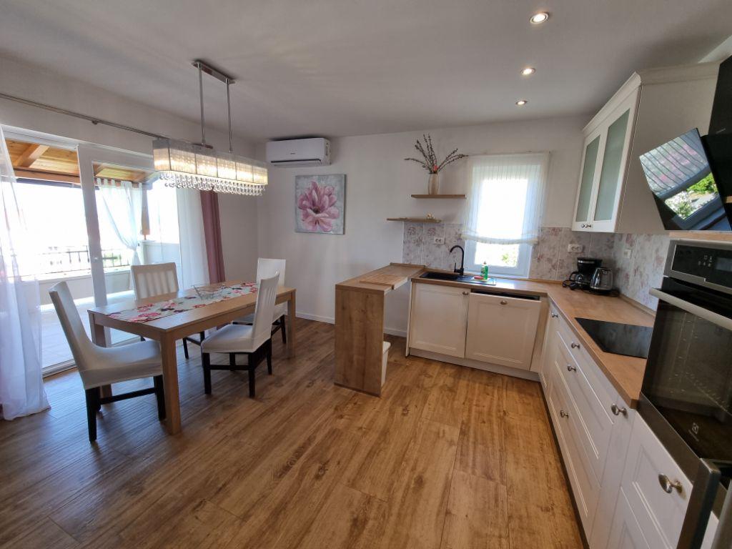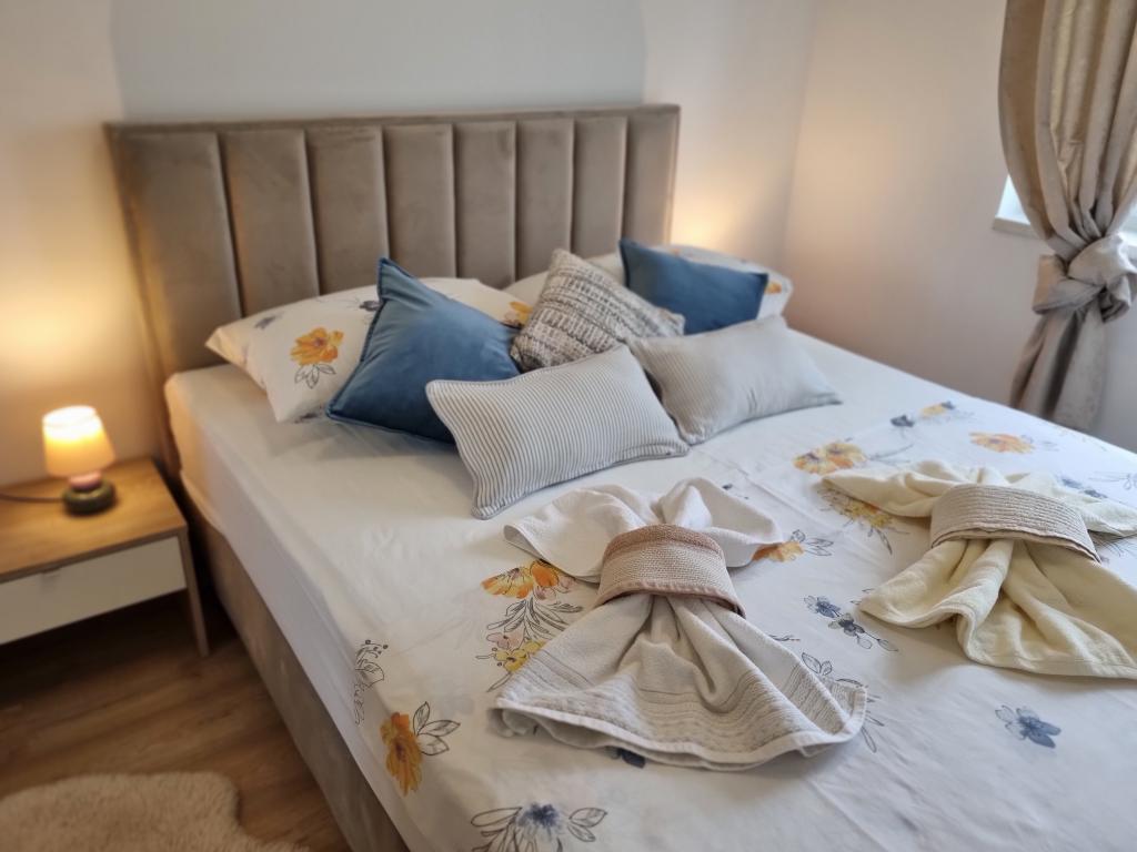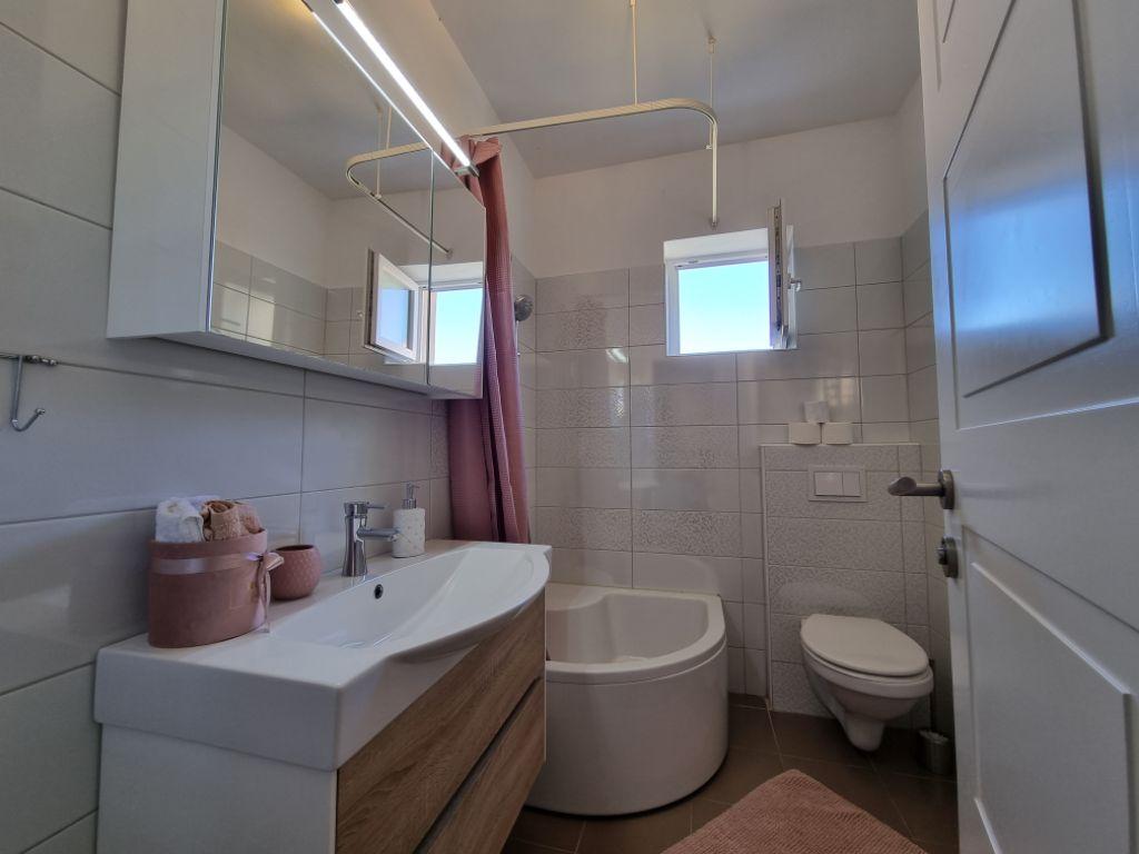 Pięknie urządzone apartamenty z całym wyposażeniem ułatwiającym wakacje. Dom otoczony jest dużym ogrodem z placem zabaw dla dzieci i grillem. Każdy apartament posiada oddzielny taras z widokiem na morze. Dom znajduje się 400 m od morza i najbliższej plaży.