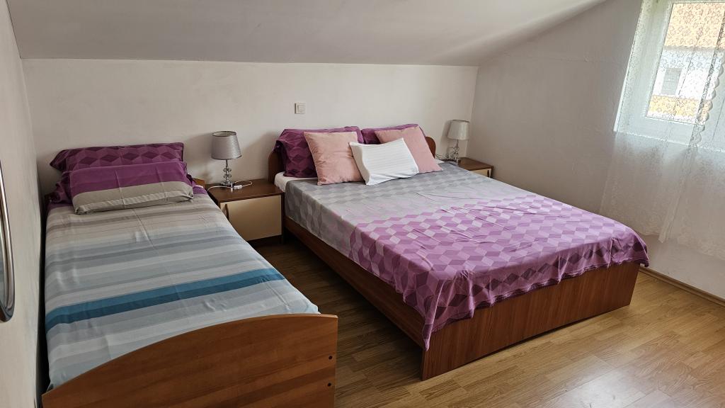 Byliśmy bardzo zadowoleni z Marii, wszędzie piękne, czyste miejsce, widok na morze, miła gospodyni i rodzina, wyjaśniła wszystko po przyjeździe, gdzie jest to, co jest możliwe i gdzie można się udać i pomogła wszystkim. Zakwaterowanie jest w odległości krótkiego spaceru około 5 minut od plaży i 10 minut od miasta Rab. Mieliśmy całe mieszkanie, sypialnię, kuchnię z salonem, balkonem i łazienką, wszystkie w 100 procentach wyposażone i doskonale uporządkowane. Dziękuję bardzo za pobyt.