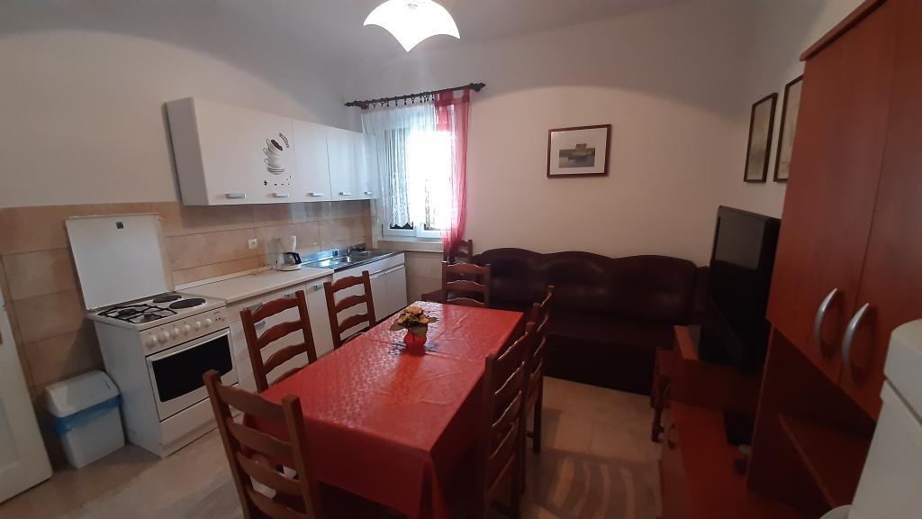 Znajdujemy się w pobliżu zatoki Padova III na wyspie Rab. Oferujemy naszym gościom zakwaterowanie w apartamentach zlokalizowanych w domu, około dziesięciu metrów od morza. Nad piaszczystą plażą znajduje się nasz prywatny taras z leżakami, a z balkonów wszystkich apartamentów roztacza się piękny widok na morze. Na dziedzińcu pod drzewami oliwnymi do dyspozycji gości jest duży grill i stół jadalny, a także huśtawki i zjeżdżalnia dla dzieci oraz stół do tenisa stołowego. Czekamy na Państwa przyjazd i życzymy miłego pobytu.
