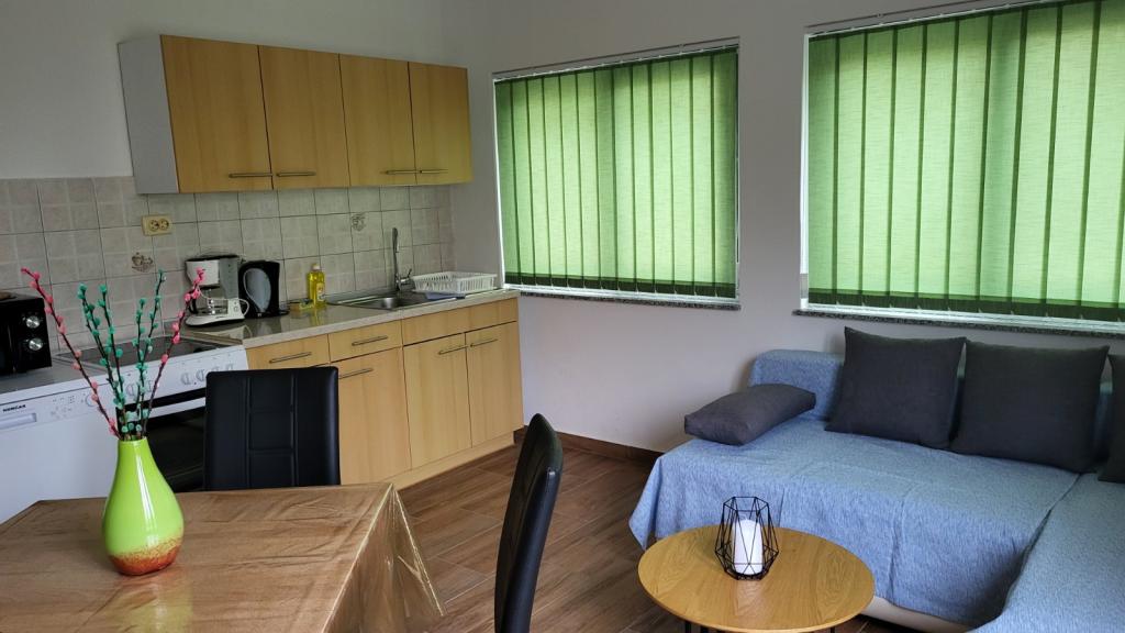 Apartamenty Padova 2 zlokalizowane są w spokojnej części wyspy, niedaleko plaży Padova II, w otoczeniu ogrodu i zieleni roślin ozdobnych. Są wyposażone we wszystko, co niezbędne do przyjemnego i beztroskiego wypoczynku; zmywarka, pralka, kuchenka mikrofalowa, czajnik, toster, programy satelitarne, WIFI... Apartamenty znajdują się na parterze, posiadają taras i ogród, w którym można odpocząć w cieniu drzew oliwnych. Na tarasie dostępny jest grill, do dyspozycji gości. Plaża oddalona jest od obiektu o 50 metrów, a piękną promenadą nad morzem można w 20 minut dojść do starego miasta Rab. Dla miłośników rejsów łodzią w bezpośrednim sąsiedztwie znajduje się taksówka. Parking znajduje się obok apartamentów i jest bezpłatny.