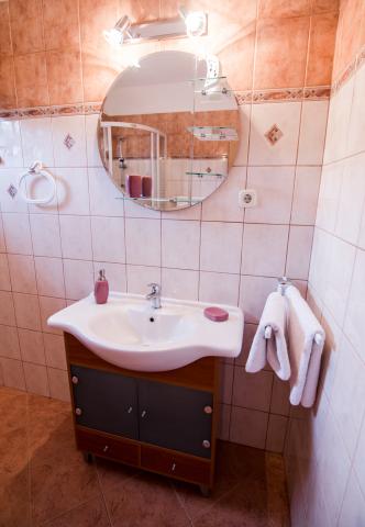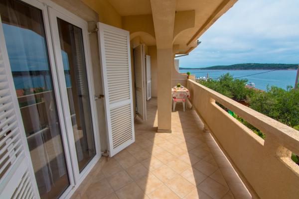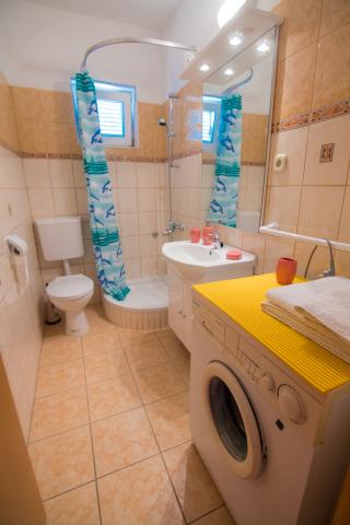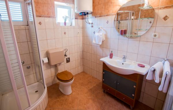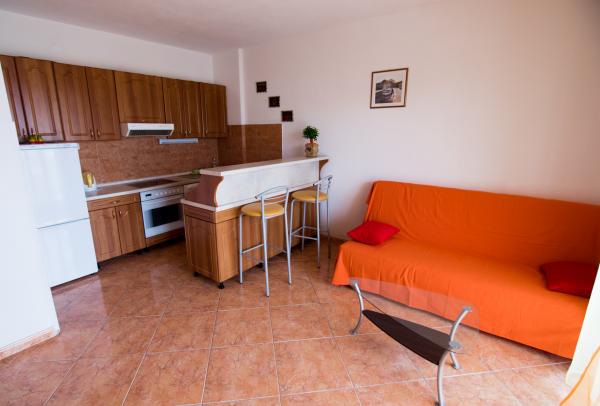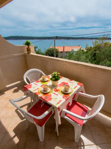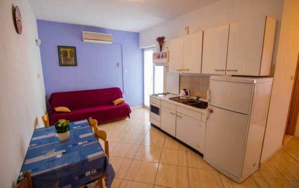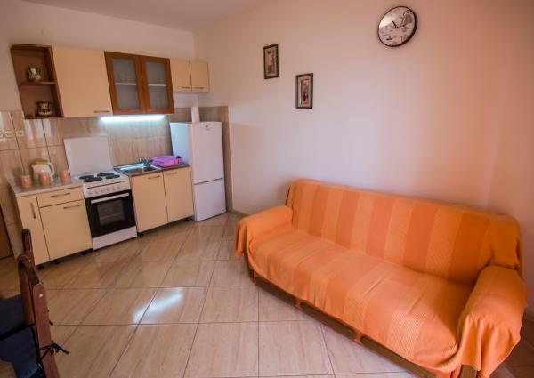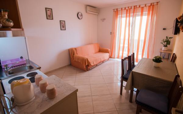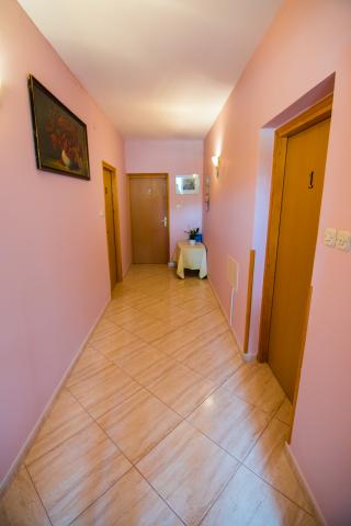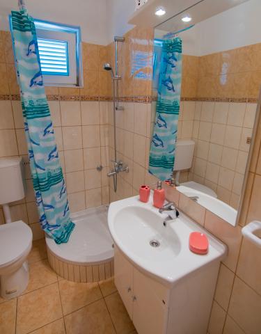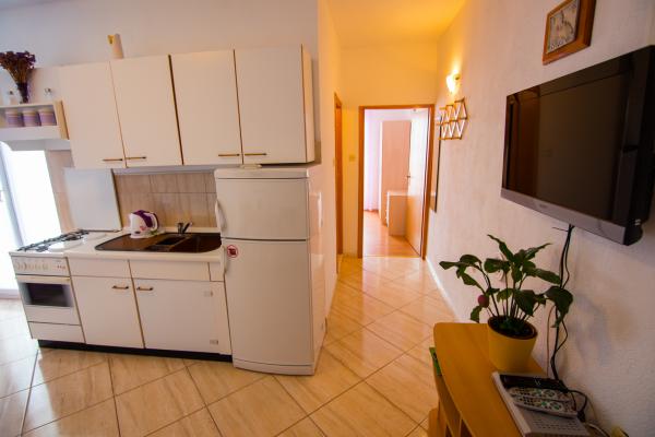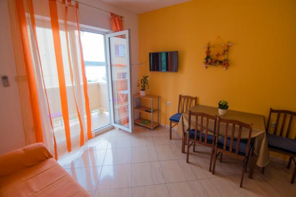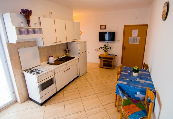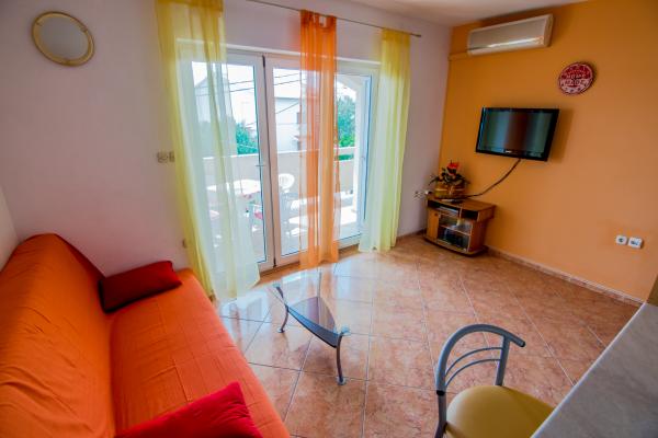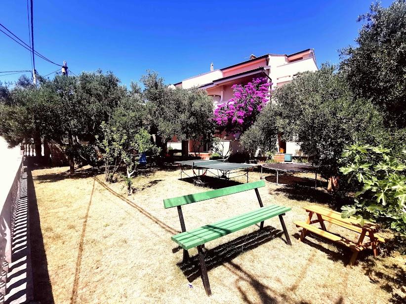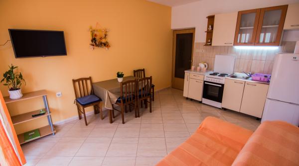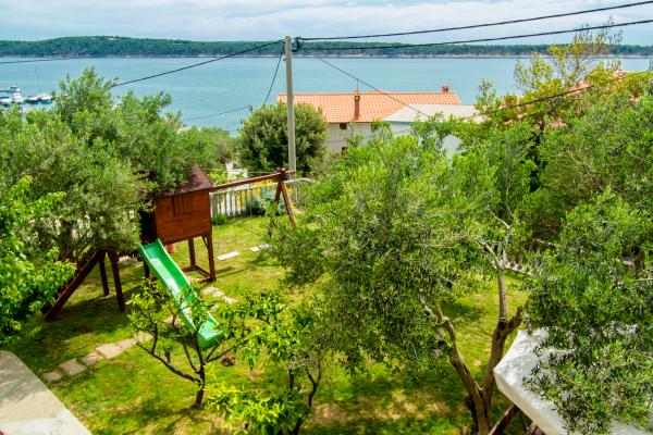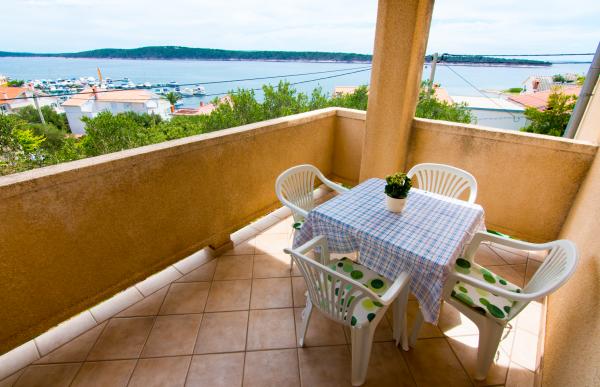 Apartamenty Španjol znajdują się w rodzinnym domu na 1. piętrze z pięknym widokiem na morze, w bardzo spokojnej części Banjol. Są w pełni wyposażone i nadają się do zakwaterowania 3 osób dorosłych lub dwóch osób dorosłych i dwójki dzieci. Położone są bardzo blisko morza i plaży (50 m), która jest odpowiednia dla dzieci. Przy plaży znajduje się plac zabaw dla dzieci ze zjeżdżalnią, huśtawkami i innymi ciekawymi urządzeniami. Do centrum wyspy Rab (3 km) można łatwo dotrzeć spacerując promenadą znajdującą się obok domu. Ogród znajdujący się na parterze domu jest częścią prywatnego mieszkania i nie jest wliczony w cenę wynajmu apartamentu i nie jest przeznaczony dla gości.