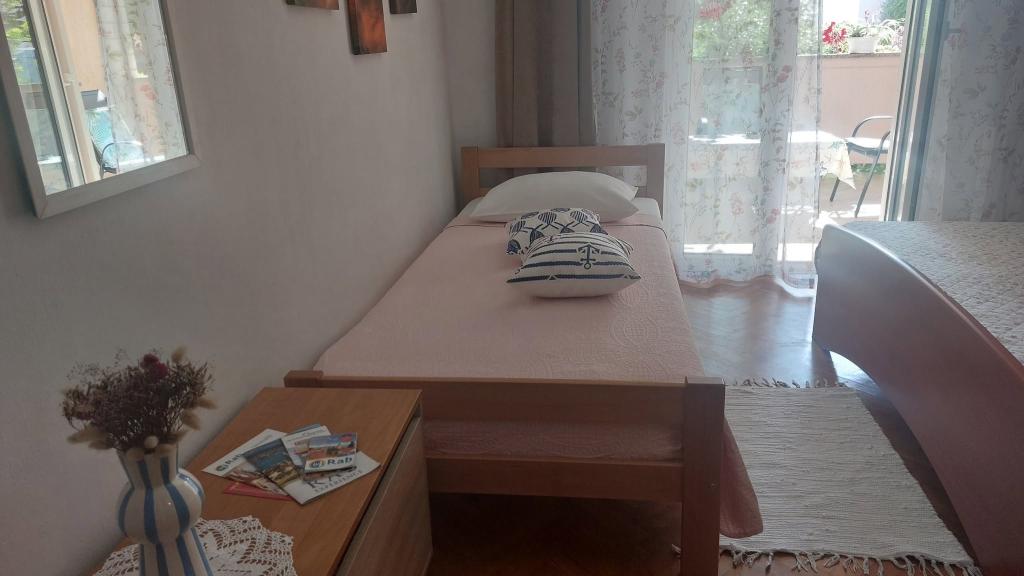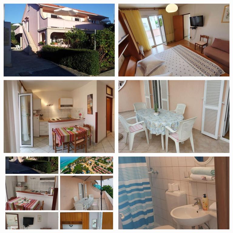 Wynajmujemy w pełni wyposażone i klimatyzowane apartamenty (dla 2-5 osób) + TV SAT/LCD, każdy z własnym tarasem lub balkonem + miejsce parkingowe na podwórzu i szybki internet. Oferujemy również klimatyzowane pokoje 2-3 osobowe, każdy z własnym tarasem, toaletą/toaletą oraz możliwością korzystania z w pełni wyposażonej kuchni, jadalni (TV/SAT) i przyjemnego tarasu zewnętrznego z meblami ogrodowymi. Znajdujemy się w pobliżu pięknej piaszczysto-żwirowej plaży (200-250m) i wszystkich innych obiektów niezbędnych do beztroskiego i przyjemnego wypoczynku letniego (sklepy, restauracje, pizzerie, bary i kawiarnie na plaży, obiekty rekreacyjne, programy dla dzieci...) . Do starego miasta wyspy Rab z bogatą historią można dojść w zaledwie 20 minut piękną promenadą nad morzem.
