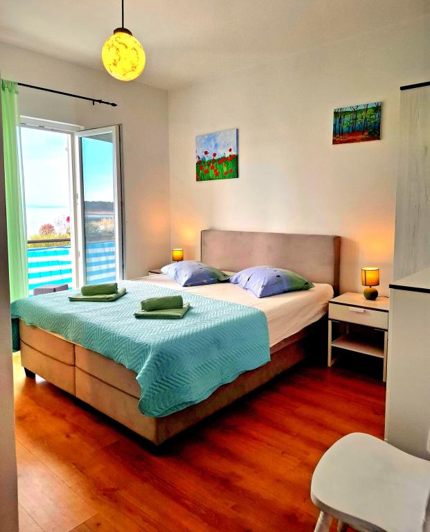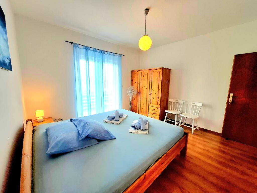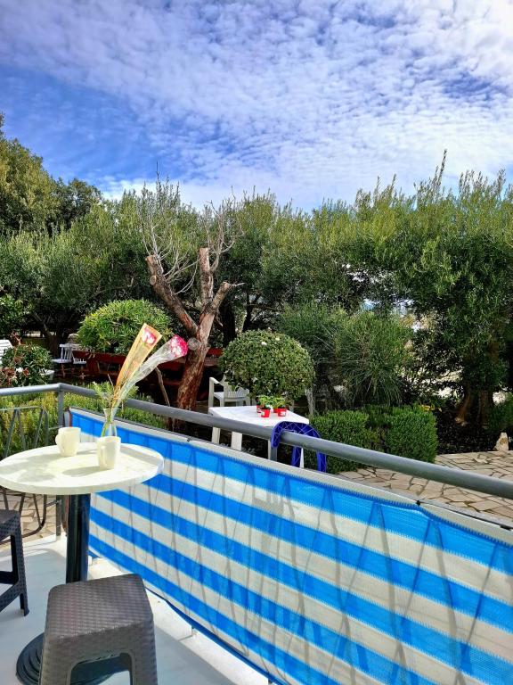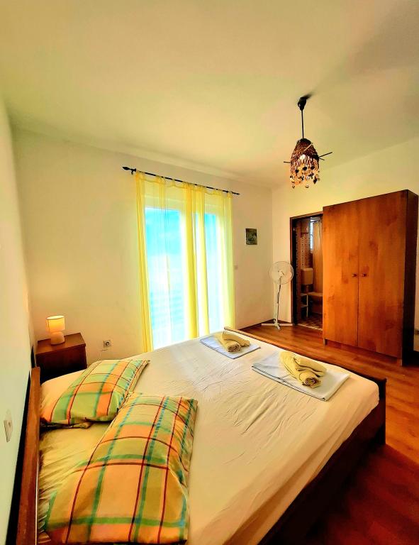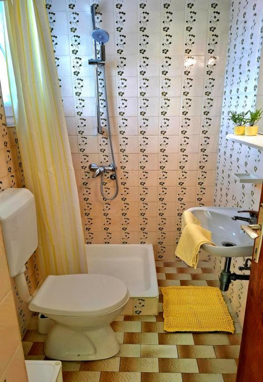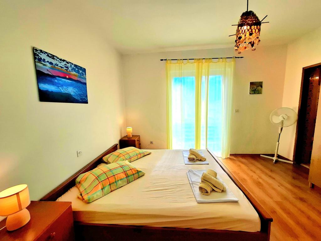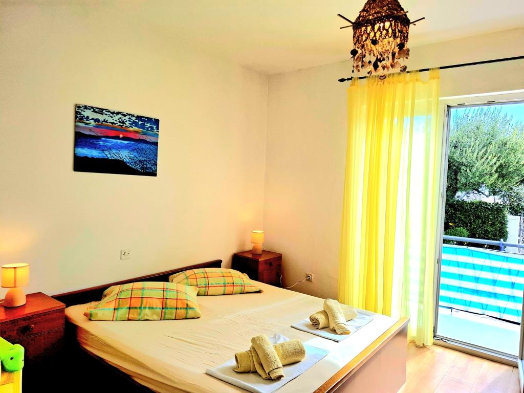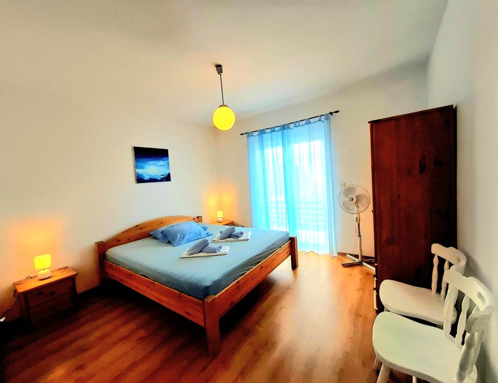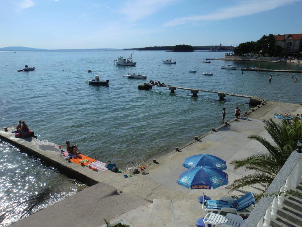 Oferujemy komfortowe i przestronne pokoje nad samym morzem, idealne dla osób poszukujących niedrogiego zakwaterowania w doskonałej lokalizacji. Każdy pokój posiada własną łazienkę i balkon, wygodne łóżka oraz wentylator podłogowy, co zapewnia jeszcze większy komfort pobytu. Pokój Żółty oferuje miejsce na łóżeczko dziecięce (bezpłatnie) oraz dostawkę (za dopłatą), dzięki czemu może pełnić funkcję pokoju rodzinnego. Do dyspozycji gości jest bezpłatny parking, duży taras oraz dobrze wyposażony wspólny kącik do przygotowywania śniadań w przestronnym holu (bez kuchni). Szczególnym atutem jest nasz ogród w cieniu drzew oliwnych z leżakami i stolikami – idealne miejsce na relaks z szybkim Wi-Fi dostępnym dla wszystkich gości. Bez telewizora i klimatyzacji, stawiamy na autentyczne letnie wakacje. Znajdujemy się zaledwie kilka kroków od plaż, promenady i barów plażowych, co czyni nas idealną bazą wypadową na aktywny wypoczynek w przystępnej cenie. Zaledwie 15 minut spacerem dzieli nas od miasta Rab.
