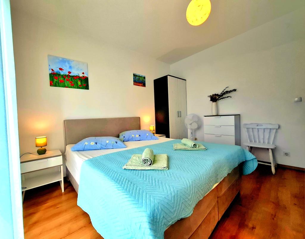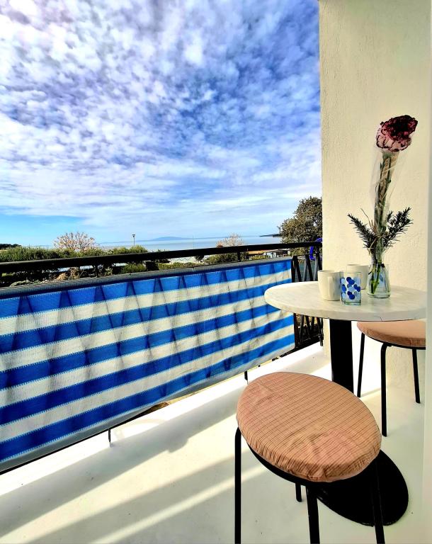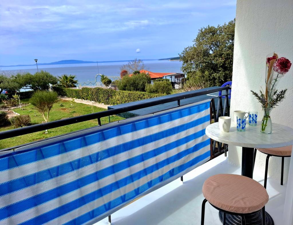 Szukasz wakacji jak dawniej – z szumem fal zamiast szumu telewizora? Nasz obiekt w pierwszym rzędzie od morza w Banjol oferuje dokładnie to: powrót do natury i prawdziwy spokój. Znajdujemy się bezpośrednio przy promenadzie Lungo Mare, 20 minut spacerem od miasta Rab. Zamiast klimatyzacji oferujemy świeżość morskiego powietrza, a zamiast ekranu – najpiękniejszy widok na zatokę z prywatnego balkonu. Co oferujemy? Idealną lokalizację: pierwszy rząd od morza, tuż przy ścieżce spacerowej lub na poranny jogging. Ciesz się prostotą, zapachem soli i bliskością starego miasta. Wakacje jak dawniej: Bez telewizji i sztucznego chłodzenia: wentylator podłogowy i morskie powietrze, ale nadal dobre połączenie internetowe; bezpłatne Wi-Fi. Wspólny, dobrze wyposażony kącik do samodzielnego przygotowania śniadania: lodówka, ekspres do kawy, czajnik, toster, kuchenka mikrofalowa, szklanki, naczynia i sztućce.