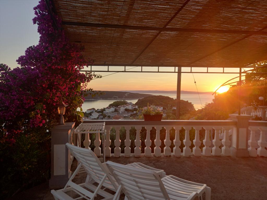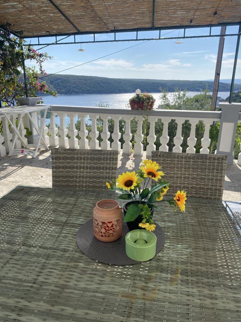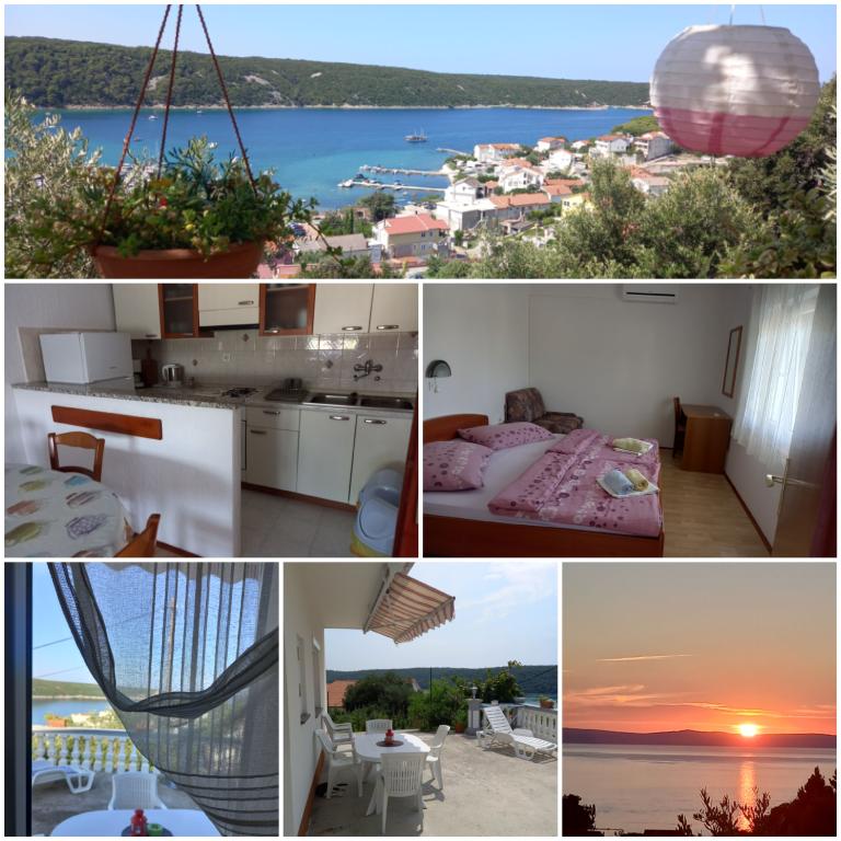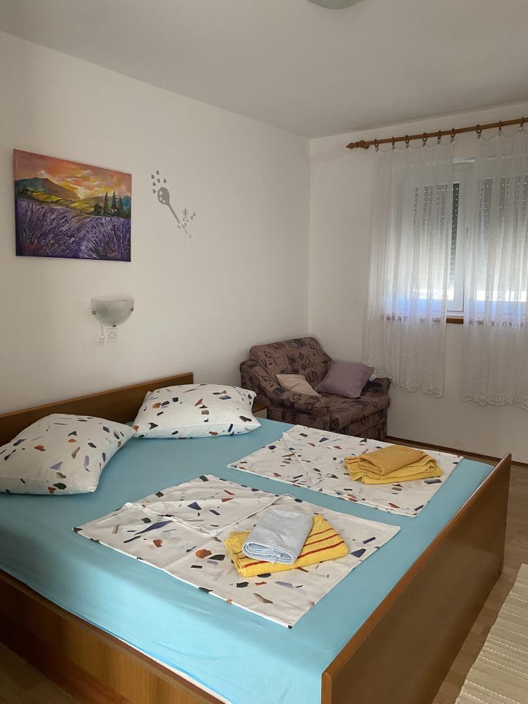 Apartament dla 4 osób, około 300 m od morza i plaży. Nieco na wzniesieniu, z widokiem na morze, cisza i spokój, taras, parking, grill, Wi-Fi, TV, pralka, klimatyzacja, miejsce do cumowania łodzi do 7 m.