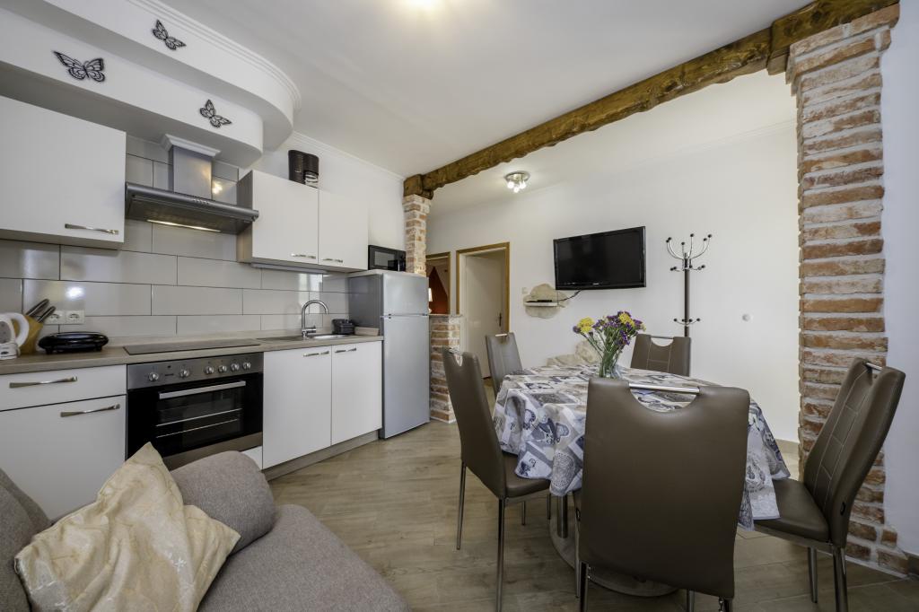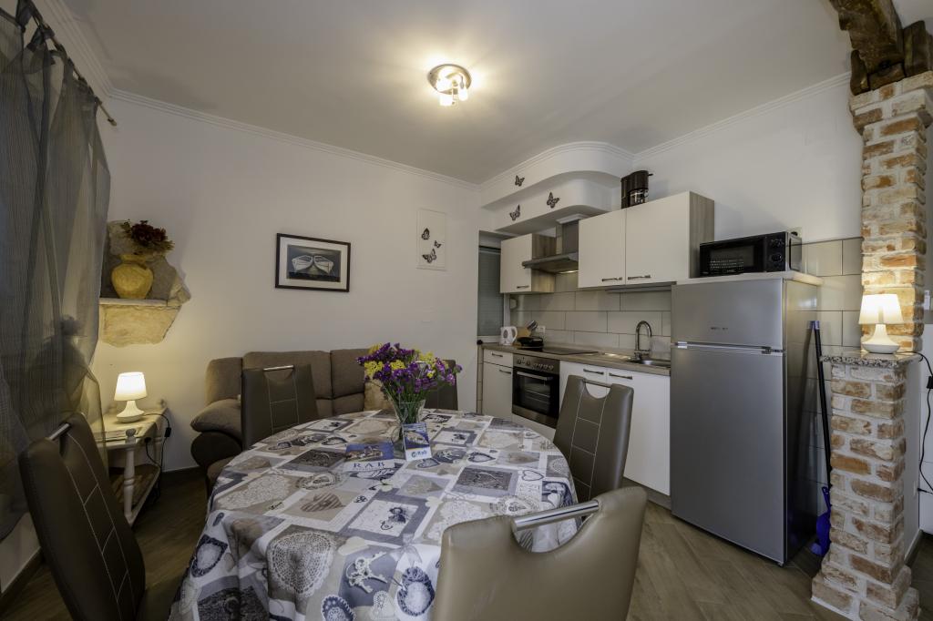 Nowoczesne apartamenty w pobliżu centrum Rab. 5 minut spacerem do nowego miasta, 10 minut spacerem od Starego Miasta i 15 minut spacerem lub dojechać do plaży. Apartamenty wyposażone są we wszystkie niezbędne do komfortowego i beztroskiego wypoczynku. Znajdują się one w rodzinnym domu w cichej okolicy.