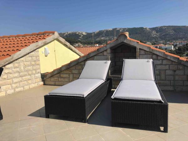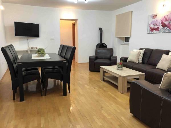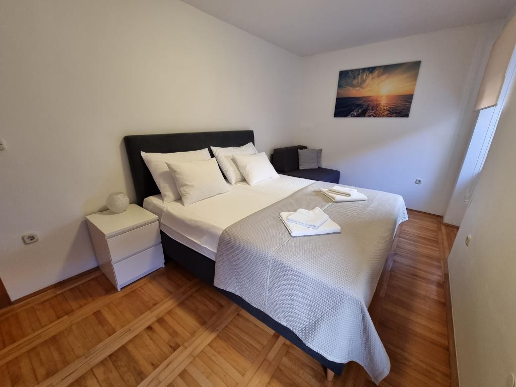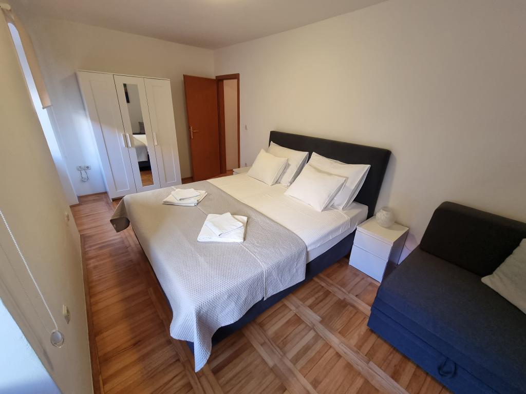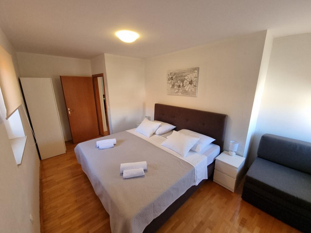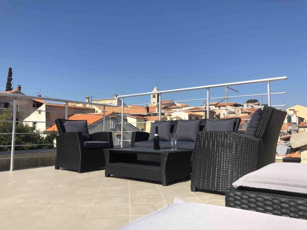 Przeżyj niezapomniane letnie wakacje w sercu miasta Rab na wyspie Rab w naszych komfortowych apartamentach położonych w spokojnej okolicy starych murów miejskich. Emocji nie ominie Cię podziwianie przepięknej panoramy z tarasu na dachu większego apartamentu, skąd będziesz mógł podziwiać niesamowite widoki na cztery słynne dzwonnice miasta. Nie przegap okazji, aby cieszyć się bliskością miejskiej plaży, zaledwie 2 minuty spacerem od apartamentu, lub odkrywać ulice i sklepy przy głównej ulicy, zaledwie 30 metrów od nieruchomości. A jeśli chcesz spróbować lokalnych potraw, restauracja znajduje się zaledwie 10 metrów od apartamentu! Dzięki bezpłatnemu parkingowi dla wszystkich gości na miejskim parkingu, który znajduje się tuż przy nabrzeżu, zaledwie kilka minut spacerem od apartamentu, nie musisz się o nic martwić. Zarezerwuj teraz i przeżyj niezapomniane letnie wakacje w sercu miasta Rab na wyspie Rab!