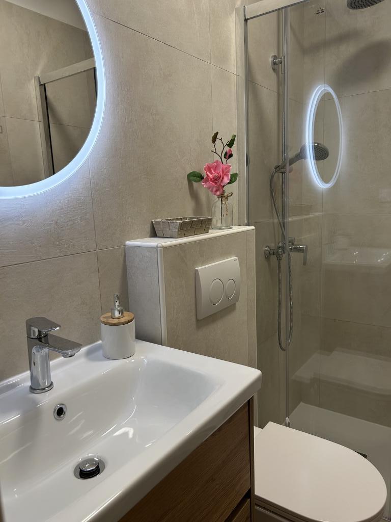 Nowocześnie wyposażone apartamenty w cichym otoczeniu. Apartamenty znajdują się na parterze oraz na pierwszym piętrze. Składają się z salonu, pokoi z łóżkiem małżeńskim, kuchni ze wszystkimi niezbędnymi akcesoriami, łazienki i balkonu oraz darmowego Wi-Fi. Na terenie obiektu bezpłatny parking, oraz możliwość skorzystania z grilla. Sklep spożywczy, kawiarnia i salon fryzjerski znajdują się w odległości 300 metrów od budynku, a inne obiekty, takie jak restauracja, ambulatorium, apteka itp. oddalone są o 5 minut jazdy samochodem. Najbliższa żwirowa plaża znajduje się 700 metrów od hotelu, a jeśli nadal zdecydujesz się na dalsze zwiedzanie, półwysep Frkanj, który jest pełen zatoczek i plaż, znajduje się 5 minut jazdy od hotelu. Stare miasto Rab oddalone jest o 20 minut spacerem wzdłuż morza lub 5 minut jazdy samochodem.