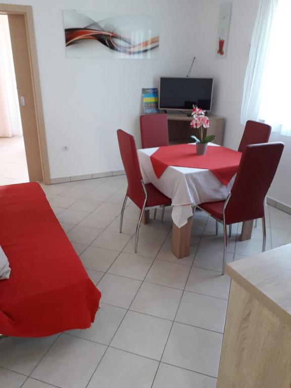 Mieszkaliśmy w apartamencie na parterze z jedną sypialnią. Apartament jest schludny, taras jest zacieniony przez cały dzień i oferuje widok na gaj oliwny. Przyjemny apartament, nie potrzebowaliśmy klimatyzacji. Gospodarze byli przyjaźni i otwarci, powitano nas domowym ciastem raba, a ponieważ uwielbiam figi, moja ciocia je dla mnie zerwała. Polecam.