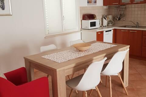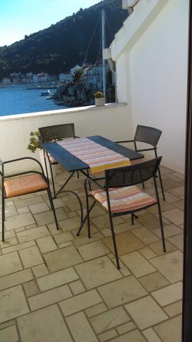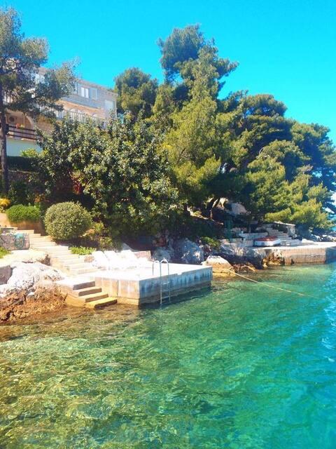 Apartamenty Raša znajdują się w Račišće na północnej stronie wyspy Korcula, 12 km od miasta Korcula. Mieszkanie o powierzchni 89 m2 znajduje się na drugim piętrze budynku, a mieszkanie 60m2 na parterze. Na pierwszym piętrze mieszka właściciel. Apartamenty posiadają niezależne osobne wejście. Obiekt znajduje się w pierwszym rzędzie od morza z małym ozdobionym pomostem, na którym można się opalać lub pływać. Restauracje, minimarket, poczta, plaże i dworzec autobusowy znajdują się 5 minut spacerem wzdłuż wybrzeża. Słynna plaża Vaja znajduje się 1 km na zachód od obiektu. Zapewniony parking.