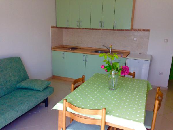 Nowoczesne apartamenty w hotelu tylko kilka kroków od plaży. Przestronny taras, gdzie można podziwiać widok na turkusowe morze i Škojić. W pobliżu znajdują się piaszczyste i kamieniste plaże. Tawerny z lokalnych specjałów ze świeżych ryb i mięsa. Aż do centrum jest zaledwie 2 km do miasta Korcula jest 9 km. Doskonałe zakwaterowanie dla rodzin z dziećmi lub młodych par, które chcą cieszyć się ciszą i spokojem z dala od werwą miasta.
