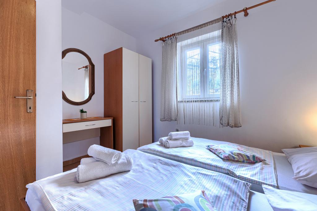 Dom z kilkoma apartamentami w osiedlu Drenje. Znajduje się 5 minut jazdy samochodem od plaży i 15 minut od miasta Labin. Apartamenty znajdują się na parterze. Zapewniają one pełną prywatność oraz możliwość relaksu i odpoczynku. Jeden apartament ma powierzchnię 42 metrów kwadratowych i składa się z sypialni z łóżkiem małżeńskim i możliwością dostawki. W skład apartamentu wchodzi salon z jadalnią, kuchnia ze wszystkimi niezbędnymi sprzętami AGD, taras z widokiem na morze i łazienka. Drugi apartament ma powierzchnię 56 metrów kwadratowych i składa się z dwóch sypialni, każda z łóżkiem małżeńskim. Salon z jadalnią, kuchnia ze wszystkimi niezbędnymi sprzętami AGD, taras z widokiem na morze i łazienka. Najbliższa restauracja znajduje się 5 minut jazdy samochodem, podobnie jak najbliższy targ. Apartamenty położone są w spokojnej okolicy, w przyjemnym otoczeniu przyrody – wszystko, czego potrzebujesz na idealne wakacje!