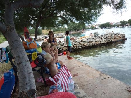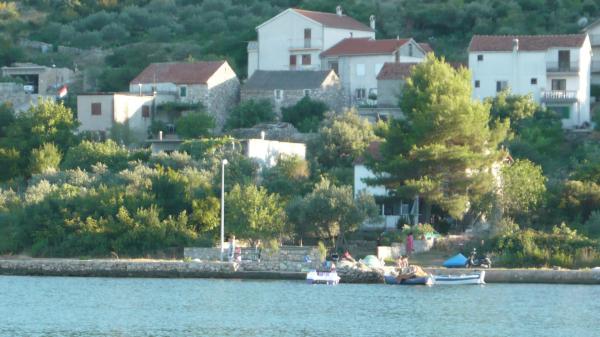 Mieszkanie znajduje się w spokojnej okolicy Rasline. Shady plaży 20 metrów. Dom i mieszkanie jest otoczone kamiennymi murami. Porośnięty drzewami oliwnymi, oleander i roślin ozdobnych. Wewnątrz ogrodzenia parkingu. Do centrum jest ok 8 min piechotą, a znajdują się restauracje i sklepy i inne plaże publiczne.