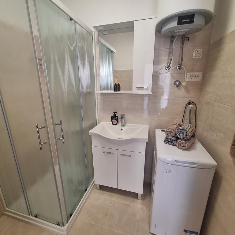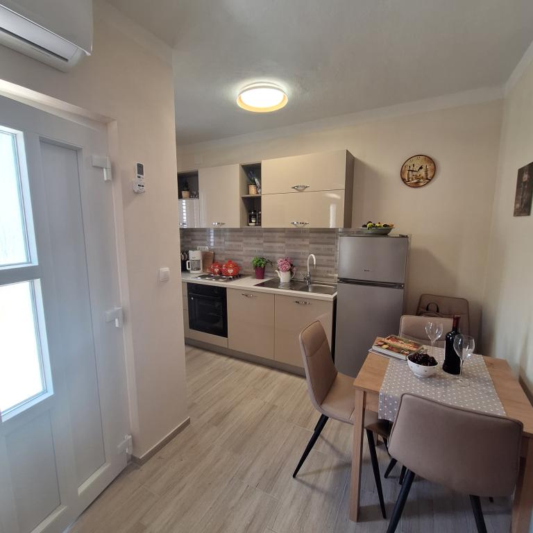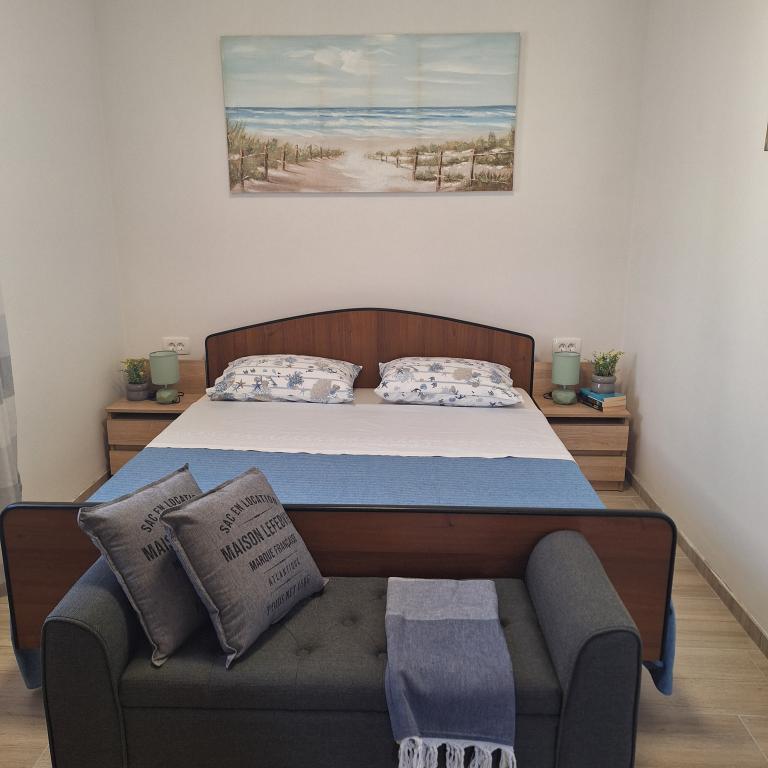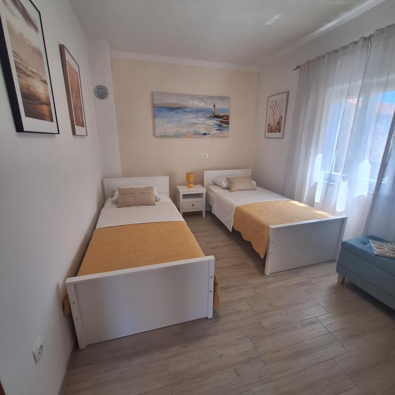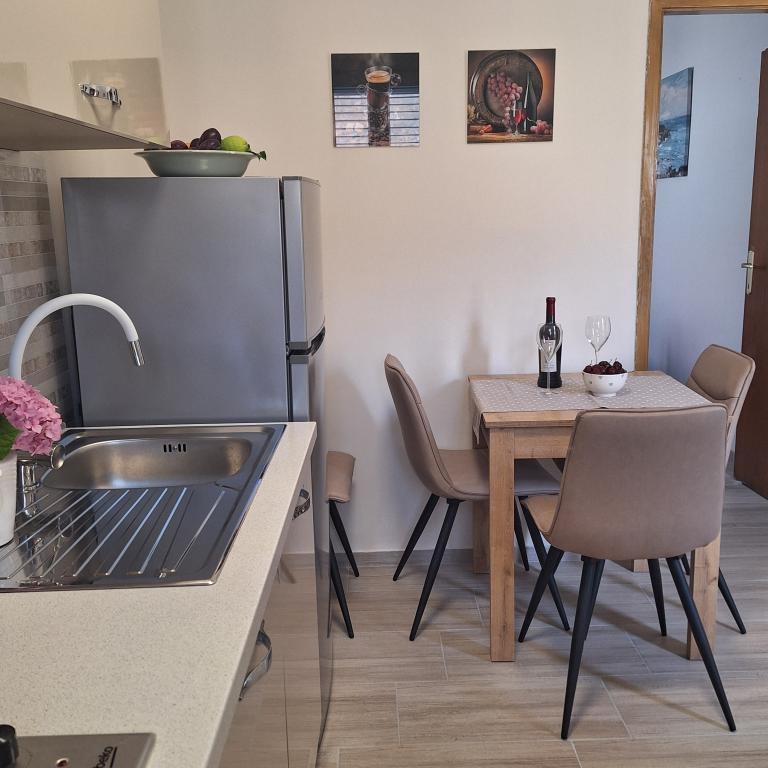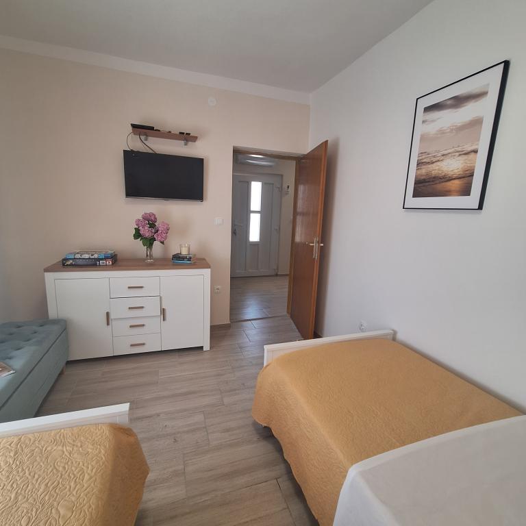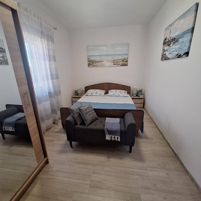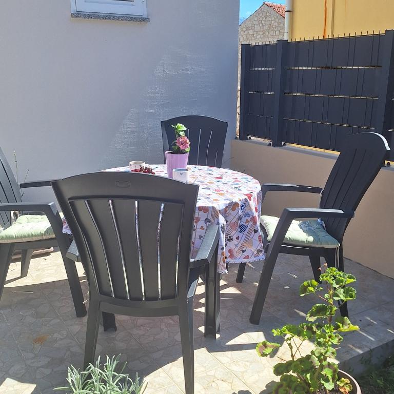 W pełni umeblowany dom o powierzchni 45 m2 znajduje się w Ražanac, małym miasteczku z widokiem na Velebit. Dom położony jest kilka minut spacerem od ścisłego centrum Ražanac, restauracji, apteki, sklepów, poczty, targu rybnego, rynku. . Do pierwszego sklepu można dojść w minutę, do supermarketu Tommy można dojść w około 10 minut. W domu znajduje się parking na jeden mały samochód. Dom składa się z kuchni, łazienki z toaletą i prysznicem oraz dwóch sypialni. Posiada klimatyzację, zmywarkę, pralkę, ekspres do kawy, czajnik, piekarnik, lodówkę z małą zamrażarką, suszarkę do włosów, suszarkę na ubrania, żelazko, deskę do prasowania, ręczniki, naczynia dla 6 osób. Obie sypialnie wyposażone są w telewizory z odbiornikiem max tv. Dostępny jest także bezpłatny bezprzewodowy dostęp do Internetu. Przed domem znajduje się taras ze stołem i krzesłami oraz parasolem.