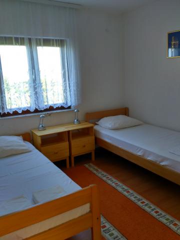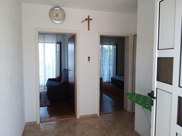 Mieszkanie znajduje się w kamienicy na pierwszym piętrze. Apartamenty posiadają dwie sypialnie. W jednej sypialni są dwa pojedyncze łóżka. W drugiej sypialni znajduje się podwójne łóżko i inne łóżko na boku. Z tego pokoju i wyjściem na duży balkon z widokiem na morze i centrum Miocic Rtina. W salonie znajduje się komplet kanapa (sofa), stół z 6 krzesłami i TV. Jest też balkon. Kuchnia jest połączona z salonem i jest wyposażony w naczynia i sztućce dla 6 osób. Kuchnia wyposażona jest el.pločom gotowania, piekarnik, lodówkę i czajnik. Łazienka wyposażona jest w standardowym prysznicem i el.bojlerom. Klimatyzacja została zainstalowana w korytarzu. Wejście do mieszkania z dużym tarasem, który może być również używany jako prysznic na świeżym powietrzu i grilla. Do plaży trzeba iść tylko 10 sekund. Odległość do piekarni i restauracji jest 400m, natomiast sklep (mini market) i inne restauracje 800m.