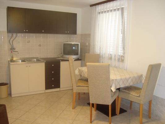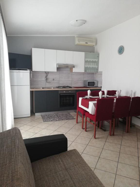 Apartamenty znajdują się w cichym miejscu, w pełni umeblowane. W kuchni znajdują się wszystkie niezbędne sprzęty do przechowywania i serwowania potraw i napojów. Mają też lodówkę z zamrażarką, kuchenkę gazową/elektryczną z piekarnikiem. Apartamenty są klimatyzowane. WiFi W łazience jest kabina prysznicowa, toaleta, umywalka z lustrem. Obok apartamentów znajdują się zadaszone tarasy z szerokimi widokami na morze. Murowany grill. Obok apartamentów znajduje się parking na własnym podwórku. Plaża ma 70 metrów. Plaża jest idealna dla dzieci. Dodatkowe udogodnienia na plaży obejmują kręgielnię i siatkówkę wodną.