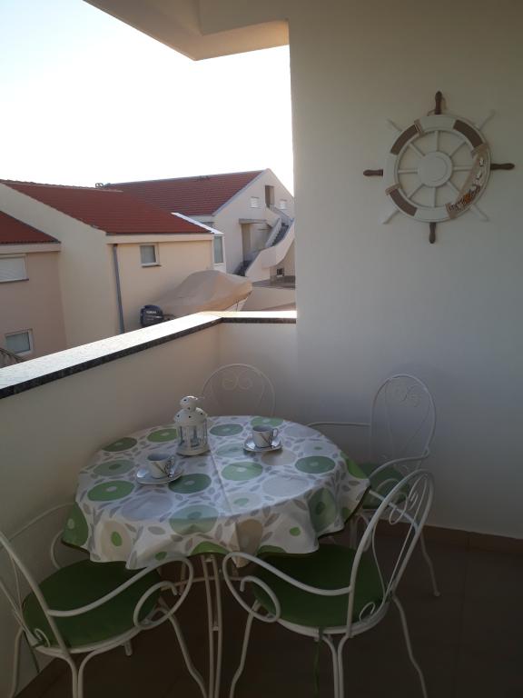 Rtina Miočići to mała miejscowość położona zaledwie 20 km od Zadaru w kierunku Pag i 3 km od mostu Pag. Znajduje się w spokojnej zatoce z ciepłym i czystym morzem i piaszczystymi plażami oraz piaszczystym dnem morskim, idealnym na wakacje, a do zgiełku Zadaru i Pagu można szybko dotrzeć. Morze jest płytkie i odpowiednie dla dzieci i osób nie umiejących pływać. Apartament (a) znajduje się na 1 piętrze, apartament (b) na wyższym parterze. Oba są dla 4+2 osób. Odległość od plaży 100 m. Apartamenty są nowe i doskonale wyposażone. Posiadają 2 sypialnie z podwójnymi łóżkami, salon z rozkładaną sofą (jako dodatkowe łóżko dla 2 osób), jadalnię ze stołem i 6 krzesłami, kuchnię wyposażoną w lodówkę, zmywarkę, piekarnik, kuchenkę i gotowanie naczynia kuchenne i serwujące, łazienka wyposażona w kabinę prysznicową, pralkę oraz oddzielną toaletę. Z jednej sypialni jest wyjście na mały balkon. Z salonu wychodzi się na większy balkon, na którym znajdują się 4 krzesła i stół, z którego roztacza się wspaniały widok na morze