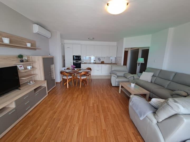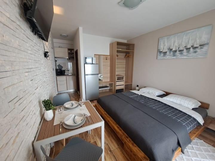 Apartamenty umeblowane, pościel i ręczniki wliczone w cenę rezerwacji. Bezpłatny parking 50 m od obiektu. Możliwość bezpłatnego korzystania z grilla.