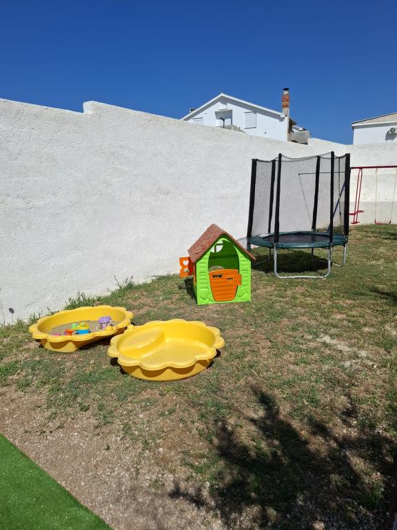 Drodzy Goście, Nasz dom jest idealny dla rodzin z dziećmi. Na podwórku znajduje się plac zabaw dla dzieci wyposażony w huśtawki, trampolinę i piaskownicę, zapewniający najmłodszym bezpieczne miejsce do zabawy. Cały teren jest ogrodzony, co zapewnia Twojej rodzinie dodatkowe bezpieczeństwo i prywatność. W domu znajduje się łóżeczko dziecięce oraz krzesełko do karmienia. Czekamy na Państwa przyjazd i życzymy przyjemnego pobytu!