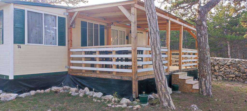 Domki znajdują się na kempingu Planik, w cichym lesie sosnowym przy wjeździe do Ražanac. Sto metrów od wejścia na kemping znajduje się supermarket Tommy (czynny od poniedziałku do soboty do 21:00, a w niedziele do 20:00) Oprócz sklepów niedaleko obozu znajduje się również dentysta, apteka, Poczta Chorwacka, Drukarnia, biblioteka, targ rybny, działka i różne obiekty gastronomiczne. Centrum miasta znajduje się około 400m od wejścia do obozu. Do plaży jest około 650m. W promieniu kilku km znajdują się różne plaże. W pobliżu znajdują się Pag, Zadar, Nin, Park Narodowy Paklenica... Domki mogą pomieścić dwie osoby dorosłe i dwoje czyli troje dzieci. Rozmiar to 8x4, czyli 24 m2 z tarasem 18, czyli 9 m2. Każdy domek posiada miejsce parkingowe przed tarasem z pięknym widokiem na Velebit.