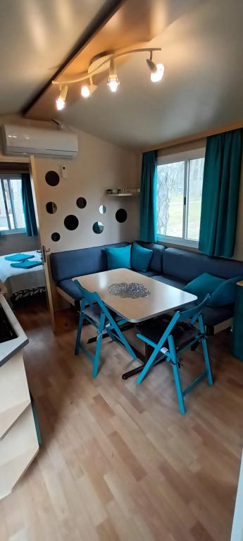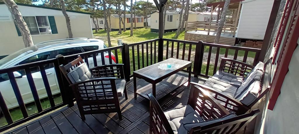 Inne udogodnienia: - bezpłatny internet oferowany przez obóz dla gości - TV - taras ze stołem i krzesłami - wyposażona kuchnia - łazienka z prysznicem - klimatyzacja, możliwość chłodzenia, suszenia i ogrzewania powietrza - świeża pościel - obiekt dla niepalących - kominek gaśnica - grill elektryczny