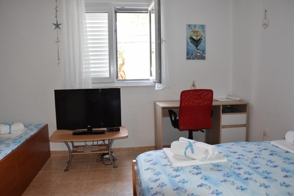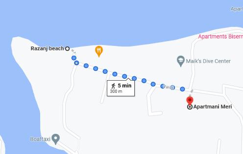 Apartamenty Meri znajdują się w Razanj koło Rogoznicy. Na główną plażę oraz do centrum tego spokojnego dalmatyńskiego miasteczka można dojść w 5 minut. Apartamenty są w pełni wyposażone, klimatyzowane, TV, WIFI w cenie, zapewnione miejsce parkingowe. Oba apartamenty wyposażone są również w pralkę. Apartamenty znajdują się na parterze i można je wynająć jako oddzielne jednostki lub w całości, co jest idealne, gdy dwie rodziny chcą spędzić razem wakacje, ponieważ goście mają duże podwórko z grillem, do spotkań towarzyskich i zabawy!