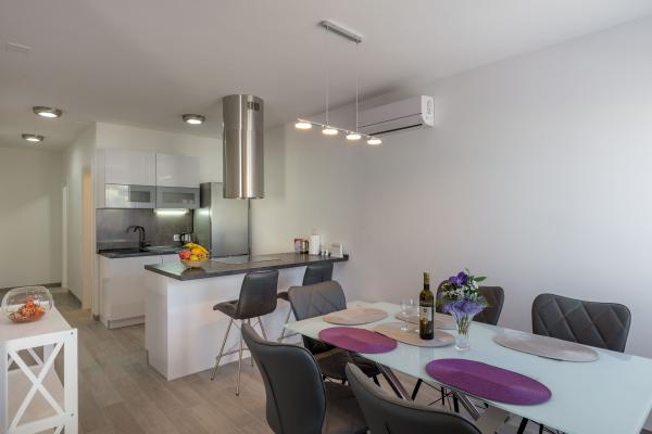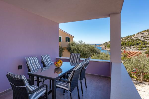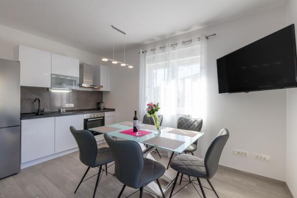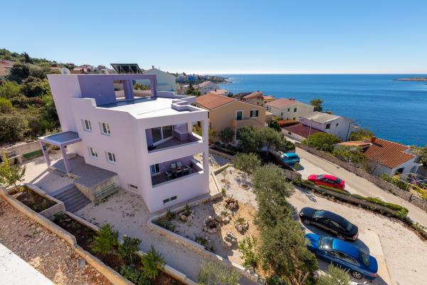 Nowo wybudowany, luksusowo urządzone apartamenty w najpiękniejszej części mierzei-Stivašnica znajdują się 30 m od morza. Oba apartamenty mają widok na morze, widok na duży ogród i możliwość korzystania z kominka w przedniej części domu. Goście mają ogromny bezpłatny parking przed domem. Apartamenty znajdują się 500 metrów od centrum mierzei, gdzie goście mogą znaleźć sklepy, restauracje i kawiarnia.