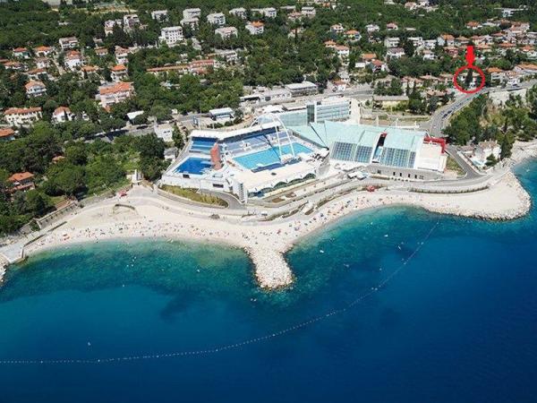 Opłata jest wliczone w cenę.Luksusowo urządzony apartament znajduje się w bardzo atrakcyjnej części Rijeki nad morzem w sportowo-rekreacyjnej części Kantrida w zachodniej części miasta, w tej samej odległości od centrum i Opatiji. W bezpośrednim sąsiedztwie (60 m) nowo wybudowany basen z zamkniętymi i otwartymi basenami, mini wellness i kawiarnia, siłownia, publiczny garaż, restauracja-pizzeria; nowa plaża Ploče pod kompleksem basenów (80 m); kamienista plaża Villa Nora z usługą fast-food w miesiącach letnich (80 m); hala sportowa (200 m); stadion piłkarski (300 m); korty tenisowe (1500 m); blisko dwóch stacji benzynowych (200 m); Bankomat, kiosk, przystanek autobusowy (150 m); apteka (200 m)