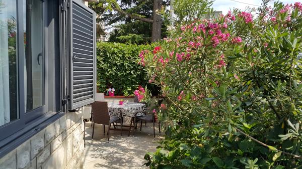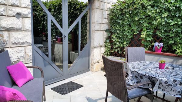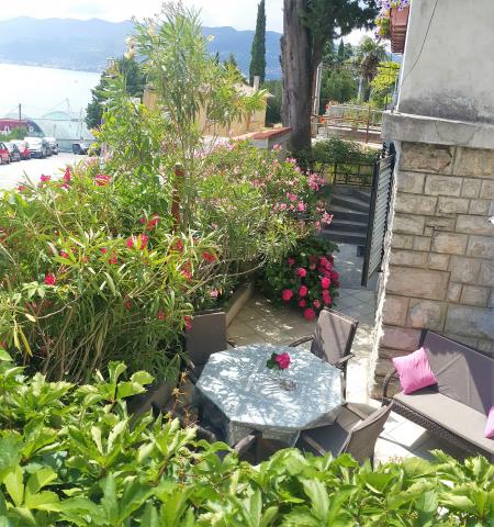 Mieszkanie znajduje się na parterze domu rodzinnego z osobnym wejściem i tarasem z widokiem na morze; 2 pokoje - jedno podwójne, jedno pojedyncze (łóżko francuskie 140x200 cm); możliwość korzystania z 2 dostawek w pokoju dziennym (trzyosobowe łóżka); kuchnia (piekarnik, kuchenka mikrofalowa, lodówka z zamrażarką, ekspres do kawy); salon z kominkiem (linia muzyczna, radio, TVSAT / DVD); łazienka (pralka); Klimatyzacja; bezprzewodowy internet