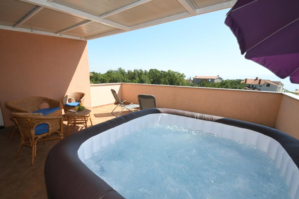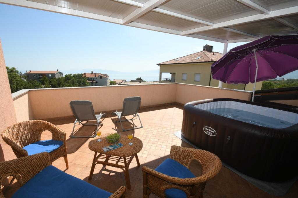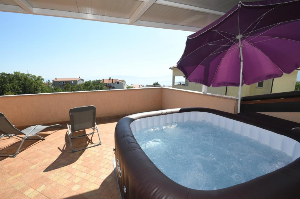 Apartament Relax w pobliżu Opatija znajduje się 14 km od Perły Adriatyku Opatija. Możesz doświadczyć piękna tego piękna w 10 minut. Apartament znajduje się w samym sercu zatoki Kvarner, dzięki czemu w ciągu pół godziny można dotrzeć do Crikvenicy, Rijeki, Opatija, wyspy Krk i Istria. Luksusowo urządzony apartament oferuje zakwaterowanie dla 6 osób w promieniu 100 m2 oraz taras o powierzchni 30 m2, z którego można podziwiać widok na wyspy Kvarner. Zakwaterowanie ma kuchnię, jadalnię, salon, dwie sypialnie, łazienkę z sauną fińską i przestronny taras z jacuzzi, klimatyzację, Wi-Fi, parking. Jeśli chcesz, możesz skorzystać z ogrodowego grilla i cieszyć się przestronnym pięknie zaprojektowanym ogrodem.