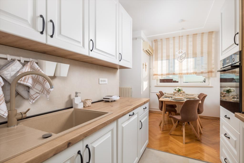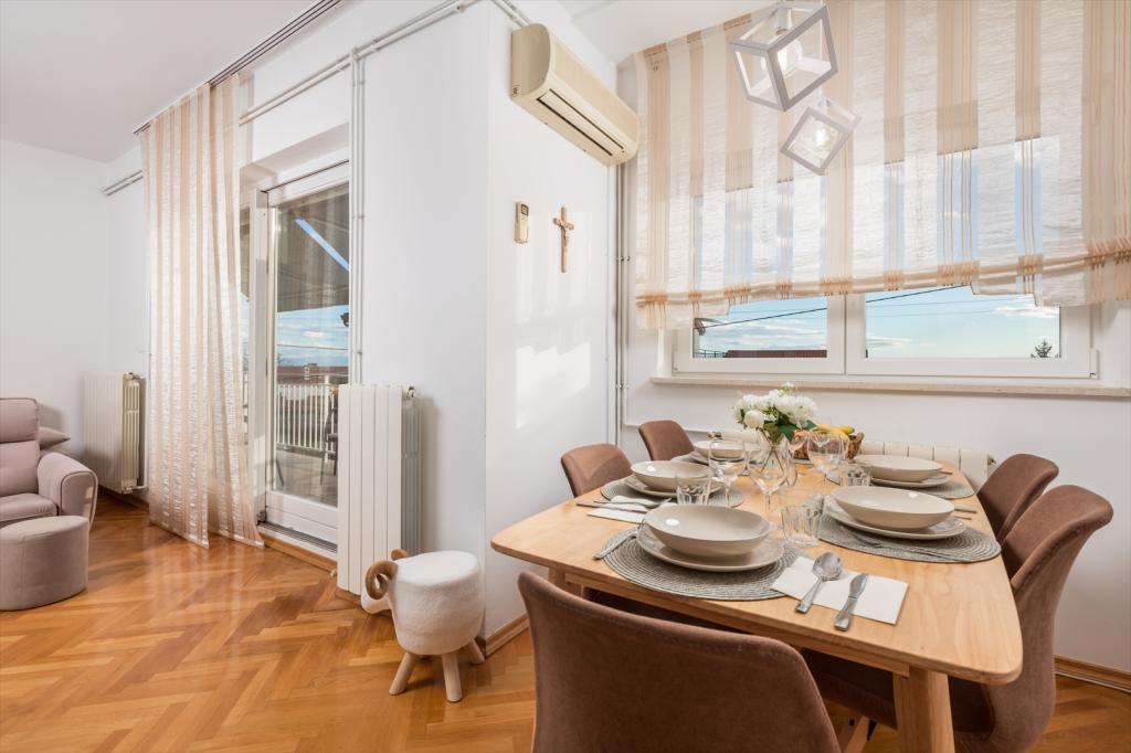 Niedrogie i relaksujące wakacje w apartamencie z możliwością dostawek (2 szt.). Znajduje się w cichej i spokojnej okolicy w pobliżu wszystkich głównych obiektów (osiedlowych sklepów i głównych centrów handlowych). Dobre połączenie z obwodnicą miasta Rijeka, tylko 1 km. Widok morza. Mieszkanie posiada 2 sypialnie, salon, jadalnię, kuchnię, łazienkę i toaletę. Apartament posiada gabinet i łóżko w salonie więc może pomieścić 8 osób.Wyposażony w pralkę, taras, klimatyzację, Wi-fi oraz duży ogród. Otoczony bujną zielenią z możliwością skorzystania z grilla oraz 2 miejsc parkingowych. Parking jest bezpłatny na najbliższej plaży w mieszkaniu. Lokalizacja idealna na możliwe jednodniowe wycieczki na Istrię, wyspę Krk, Opatiję, Crikvenicę i Gorski kotar. Możesz cieszyć się całkowicie beztroskimi wakacjami we własnym tempie ....