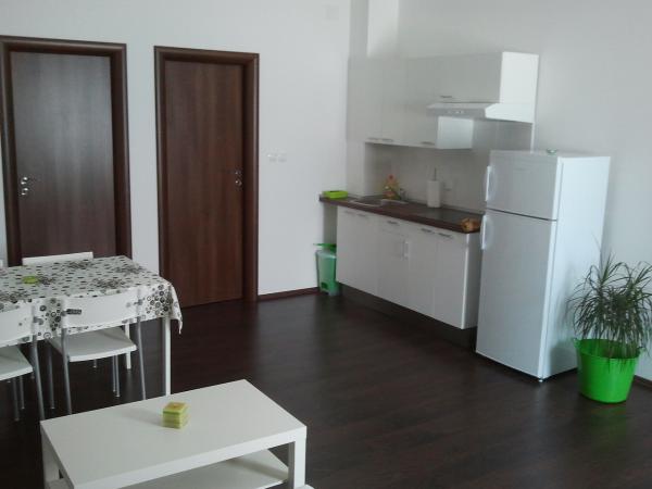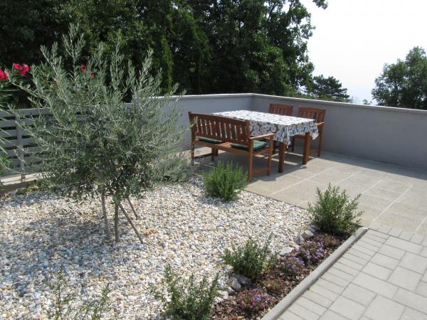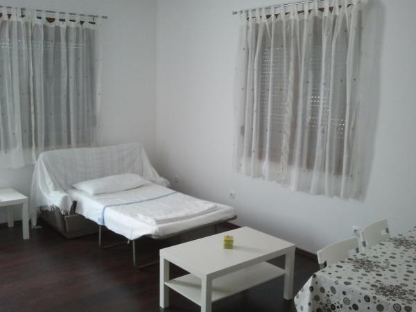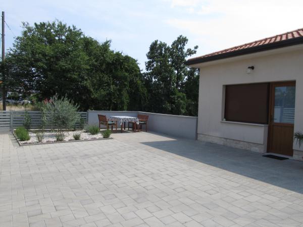 Nowe apartamenty w spokojnej okolicy z widokiem na morze i parking. Blisko restauracji, sklepów, bankomatów i stacji benzynowych. Apartamenty znajdują się na parterze z oddzielnym wejściem. Składają się z sypialni z podwójnym łóżkiem, łazienka i duży salon, kuchnia, jadalnia i pokój dzienny. W salonie istnieje możliwość dostawki dla dwóch osób. Apartamenty znajdują się w odległości 7-10 minut jazdy samochodem od plaży i 5 minut od autostrady.