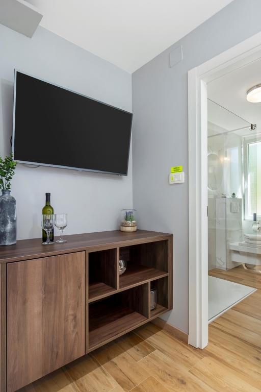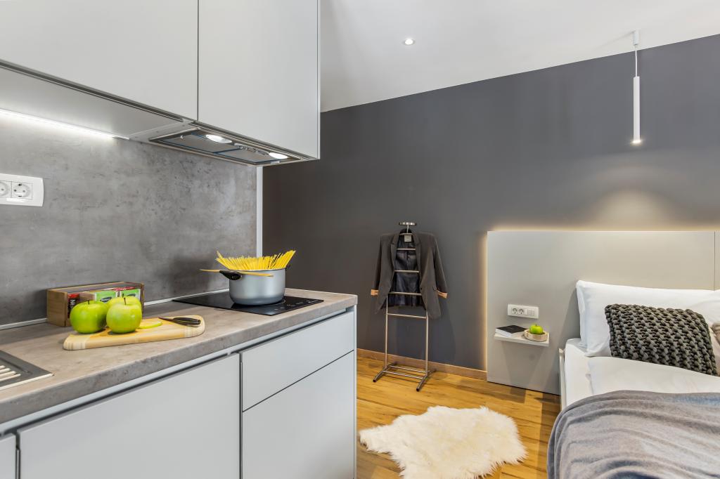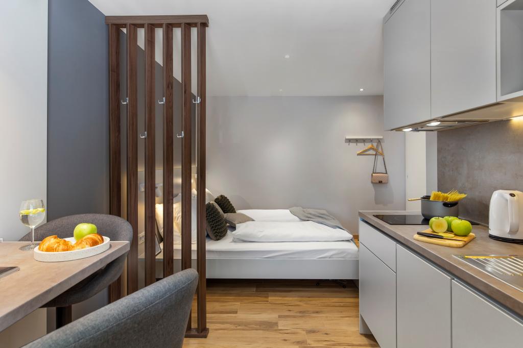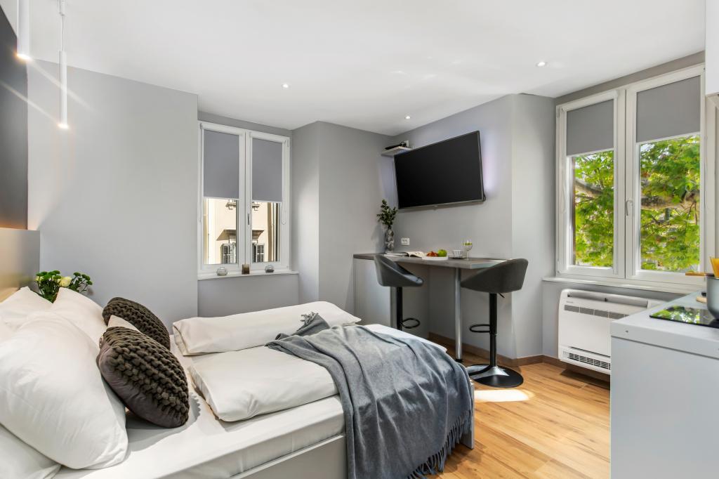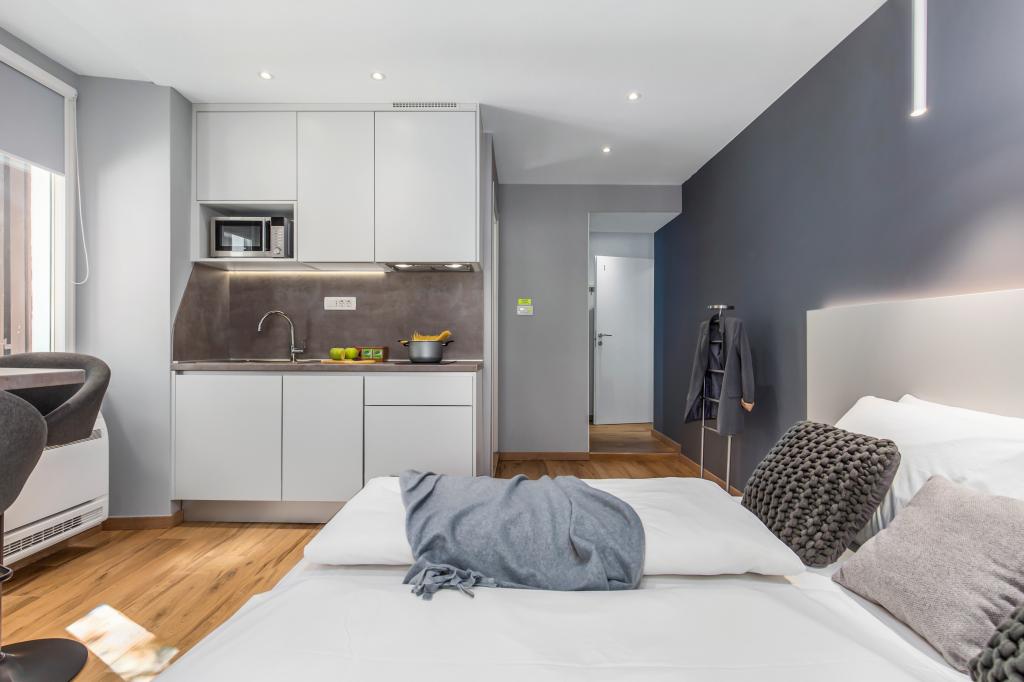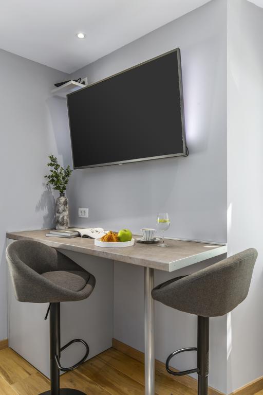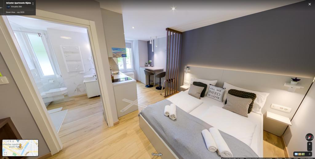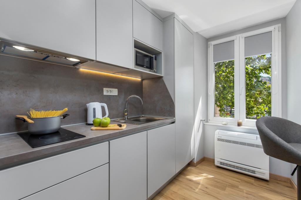 Apartamenty w centrum Rijeki - Zakwaterowanie Rijeka SAMODZIELNE zameldowanie: wejście do apartamentu za pomocą PIN-u Dwa nowe, nowoczesne apartamenty typu studio zlokalizowane są w samym centrum miasta Rijeka, na początku głównego deptaka miasta. Każdy apartament typu studio obejmuje 1 sypialnię z przestronnym łóżkiem, w pełni wyposażoną kuchnię z częścią wypoczynkową oraz łazienkę z prysznicem i suszarką do włosów. W apartamentach do dyspozycji zmywarka, lodówka, kuchenka mikrofalowa, czajnik i ekspres do kawy. Apartamenty są klimatyzowane. W każdym apartamencie znajduje się duży telewizor z płaskim ekranem z programami IPTV (T com-Max TV) oraz bezpłatny WI-FI (bezpłatny bezprzewodowy dostęp do Internetu), Netflix. W apartamentach zainstalowane jest oświetlenie nastrojowe. Dodatkowy rabat przy pobytach na 3 i więcej dni!