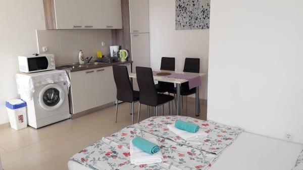 Bardzo przyjemny rodzinny apartament z podwórkiem do zabaw dla dzieci. Komfortowy wypoczynek dla 4 os. rodziny. Świeżo urządzony i czysty. W pełni wyposażona kuchnia. Niezwykle mili i gościnni gospodarze, którzy tworzą rodzinną atmosferę. Z pewnością tam wrócimy.