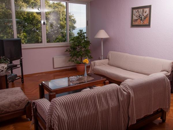 Mieszkanie Veronika znajduje się w spokojnej części rzeki, dwupiętrowy budynek z pięknie utrzymanym ogrodem i parkingiem. Od centrum miasta jest tylko 4 km od Opatija 6 km. Ze względu na swoje położenie ma doskonałe połączenia z Rijeka i Opatija. Wszystkie apartamenty mają widok na morze. W pobliżu znajdują się: nowy centrum sportu i rekreacji z basenem i kompleksem plaża, korty tenisowe, centrum i nowy lekkoatletyka stadion piłkarski. Mieszkanie ma dwa pokoje, przestronny salon, w pełni wyposażona kuchnia, łazienka i balkon. Apartament wyposażony jest w: Podstawowe łóżko-4-2 dostawki, klimatyzacja, radio i 2 TV, TV satelitarna, internet, pralka z suszarką, zmywarka, suszarka, żelazko, zamrażarka, ogrzewanie, parking