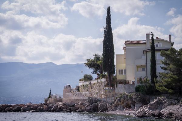 Nowo wyremontowany stary Villa Nora oferuje swoim gościom dwa znakomicie urządzone apartamenty z dużymi tarasami nad morze, parking, centralne ogrzewanie, klimatyzację i telewizję satelitarną, łącza internetowe, zmywarka, itp. Willa znajduje się w spokojnej części rzeki, w strefie sportowej rekreacionoj Kantrida morze, tytułowy plaża i basen Kantrida, tylko 6 km od Opatija, i 4 km od centrum rzeki, dobrze połączone drogi miejskie.