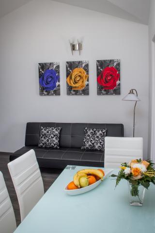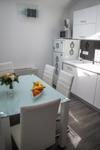 Opłata jest wliczone w cenę.Oferujemy dwa nowoczesne apartamenty dla 4 osób (z łazienką), wszystkie apartamenty posiadają duże tarasy nad morze, parking, centrum Manhattan. ogrzewanie, chłodzenie, i TV, satelitarna, internet i wi-fi, zmywarka, itp. Każdy gość jest mile widziany w Villa Nora, gdzie zostanie on zaaprobowany przez przyjaznych gospodarzy i zapewniają niezapomniany pobyt w celach biznesowych lub charakterze turystycznym. Taras oferuje Gościom zapierające dech w piersiach widok na morze, który jest pokazany w fantastycznych i pięknych odcieniach niebieskiego. Gospodarze mieszkają w tej samej willi i będzie do Państwa dyspozycji, od konieczności. Dom posiada ogród, w którym klient może swobodnie korzystać.
