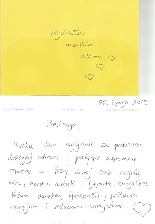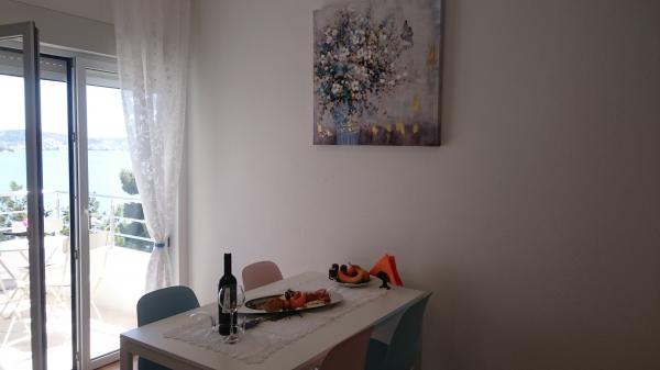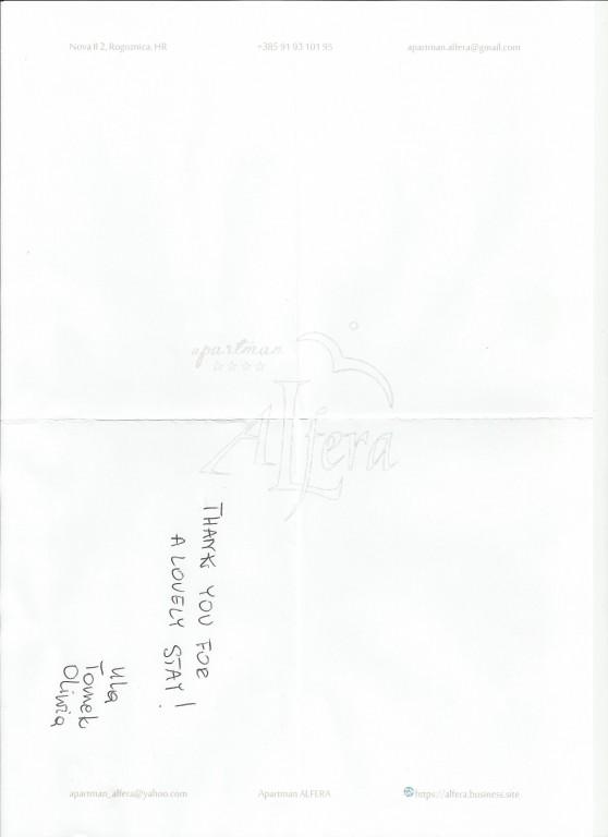 Nowo wyremontowany apartament Alfera położony jest w wyjątkowej lokalizacji, zaledwie 30 kroków od morza. Jest w pełni wyposażony, ładnie umeblowany, pełen światła, czterogwiazdkowy, z zapewnionym jednym miejscem parkingowym i oferuje zakwaterowanie dla trzech osób (ewentualnie dla czwartej). Apartament Alfera z bezpośrednim widokiem na morze jest również dumny ze swojego otoczenia, które jest starannie zagospodarowane w duchu śródziemnomorskiego krajobrazu dla pełnego relaksu i przyjemności, i jest idealnym miejscem na wakacje z rodziną i przyjaciółmi. Powitanie!