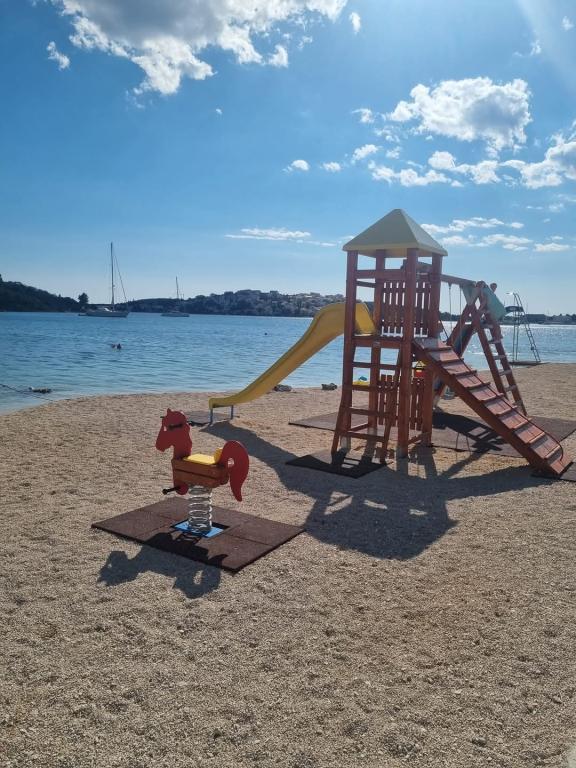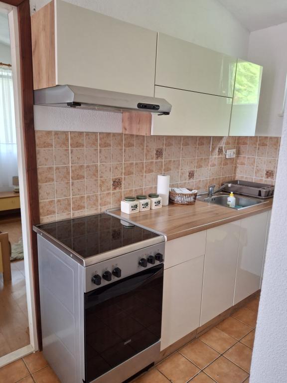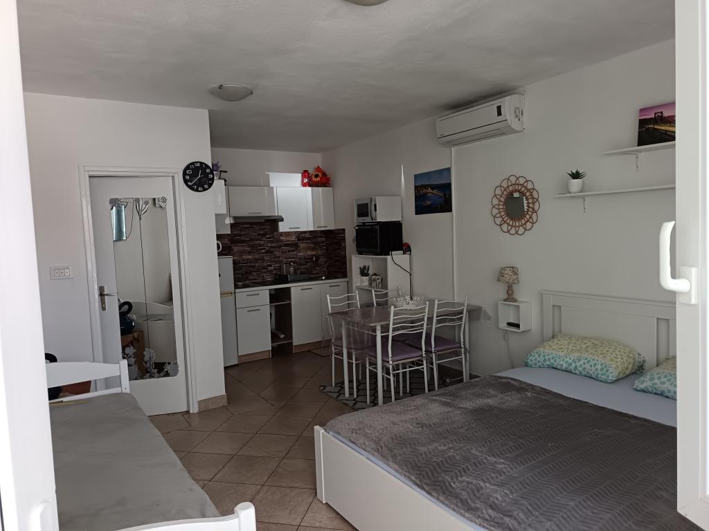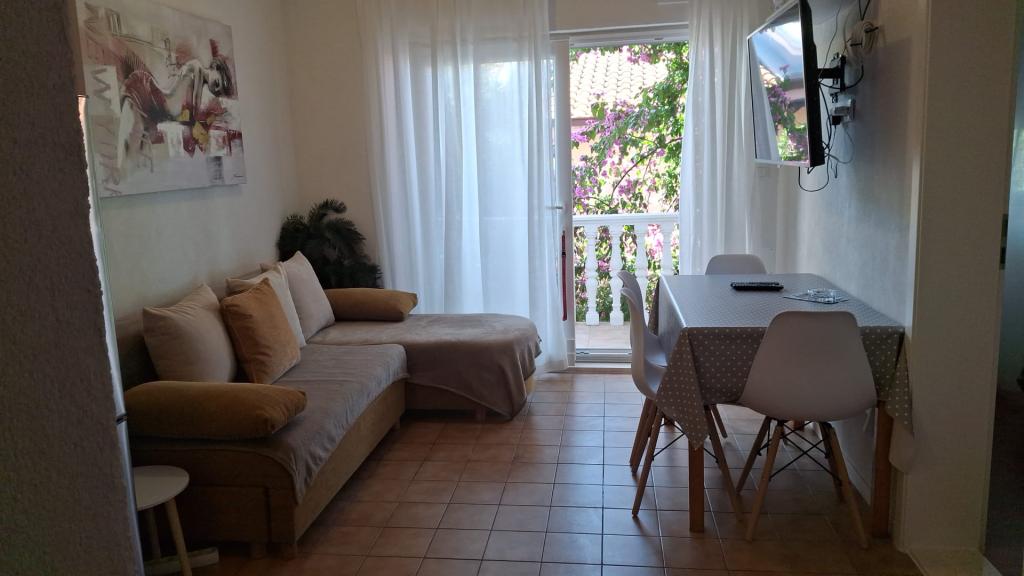 Ładnie umeblowany apartament w spokojnej zatoce, 50 metrów (3 minuty spacerem) od plaży. Betonowa promenada wzdłuż morza prowadzi do centrum miasta.