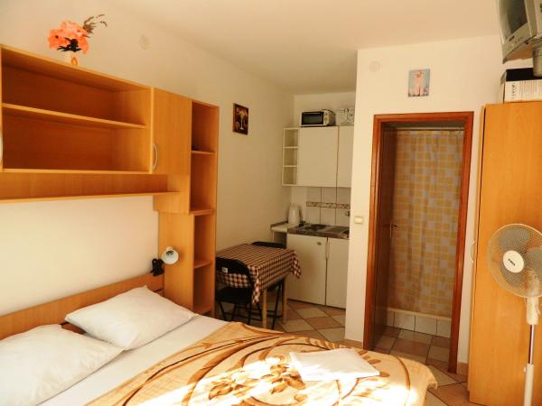 Dom z 7 apartamentami typu studio znajduje się w spokojnym miejscu Stupin čeline (Podglavica), 2,7 km od centrum Rogoznicy. Naszym gościom oferujemy: -Poza standardowym wyposażeniem kuchni mimi (naczynia), kuchnia wyposażona jest w frytkownicę, patelnię elektryczną, ekspres do kawy oraz na życzenie mini piekarnik elektryczny -bezpłatny WIFI-internet -Posiadamy zadaszoną przestrzeń do zabawy i zabawy, gdzie znajdują tenis stołowy, piłkarzyki i piaskownicę z zabawkami. - Naszym gościom oferujemy bezpłatne korzystanie z rowerów oraz miejsce do cumowania łodzi w porcie naszego miejsca. - Do dyspozycji gości oddaliśmy parking oraz miejsce na grilla z zadaszonym terenem i stołem do spożywania posiłków i napojów.
