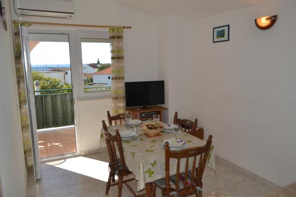 W pełni urządzone apartamenty z widokiem na morze, od plaży 50 metrów od centrum 10 minut. Każdy apartament jest klimatyzowany, z możliwością korzystania z Internetu. Każdy apartament posiada łazienkę, oddzielną kuchnię z czajnikiem i piekarnikiem. Mieszkanie ma dwa pokoje, każdy pokój z podwójnym łóżkiem. Jeden pokój wychodzi na taras z balkonem, drugi ma duże okno. W apartamencie znajduje się pokój dzienny, jadalnia i rozkładana sofa. Apartamenty są wyposażone w telewizję satelitarną. Każdy apartament posiada taras z stół i krzesła i parasol. W domu znajduje się parking, a każdy apartament ma własne miejsce parkingowe przed domem. Ponadto, korzystanie z gości jest oferowane i pokryte grilla.