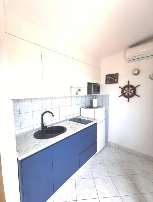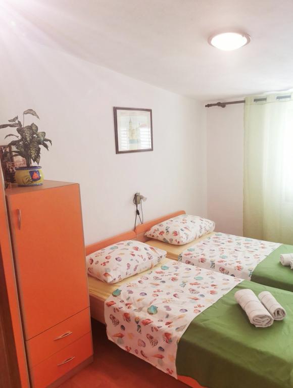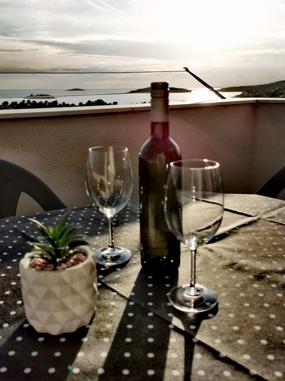 Apartamenty Antonio są pięknie urządzone. Mają piękny widok na morze i wyspy.Znajdują się w prywatnym domu na 2. i 3. piętrze. Dom położony jest w cichym otoczeniu. Odległość od morza to 90m jak również od centrum. Park Narodowy Krka oddalony jest o 40 km, miasto Szybenik o 35 km, a miasto Split o 50 km