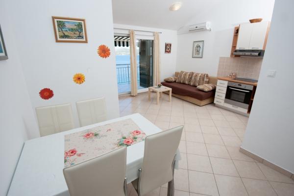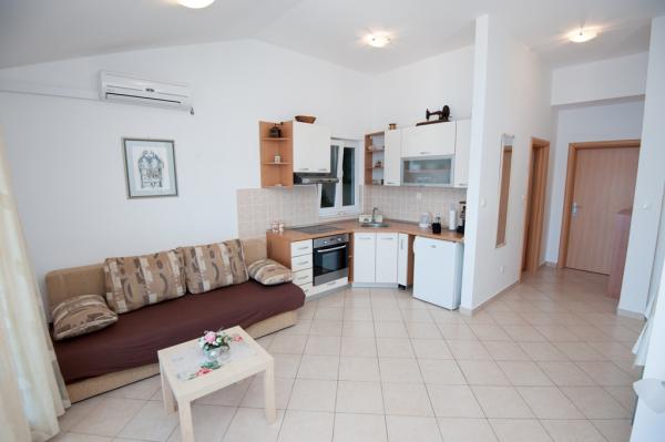 Apartamenty są nowe, uporządkowane i czyste. Taras jest bardzo duża, ze wspaniałym widokiem na morze. Plaża jest bardzo blisko (30 m) z płyt betonowych, w pobliżu kamienistej plaży. Właściciele są bardzo przyjazny i pomocny, przygotowaliśmy wspólny obiad z innych lokatorów mieszkania do poznania. Zalecamy, aby wszyscy, którzy chcą spokoju i wypoczynku.
