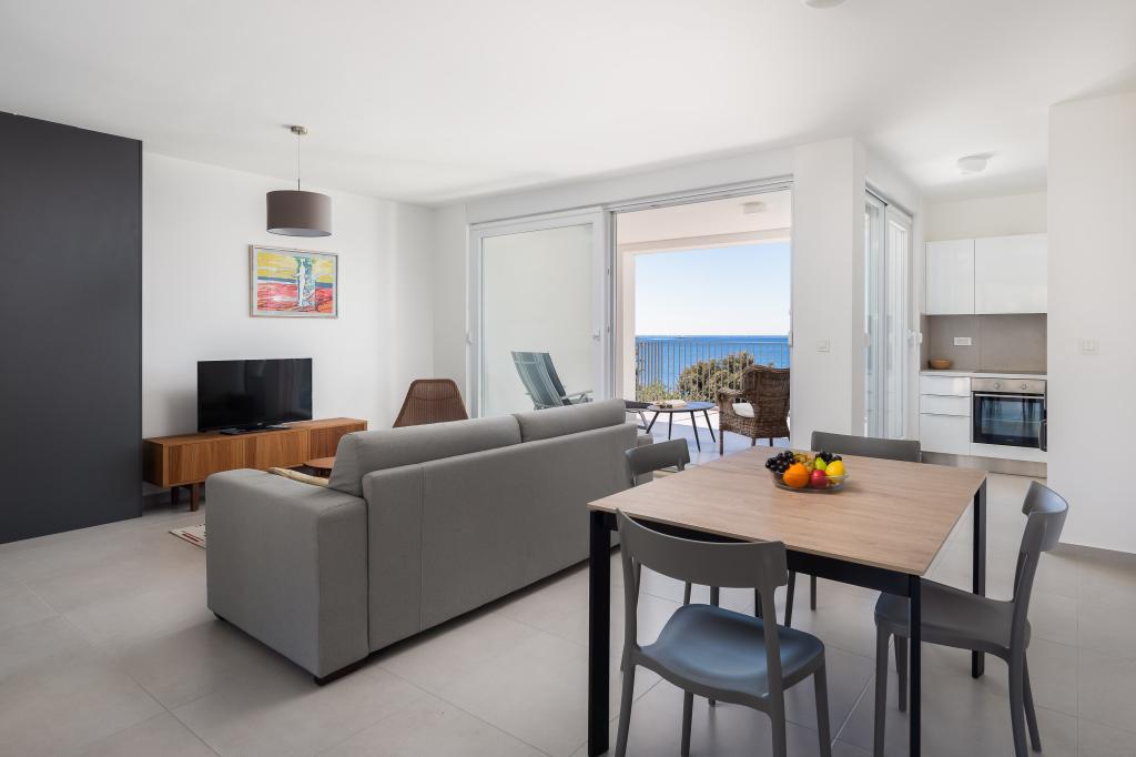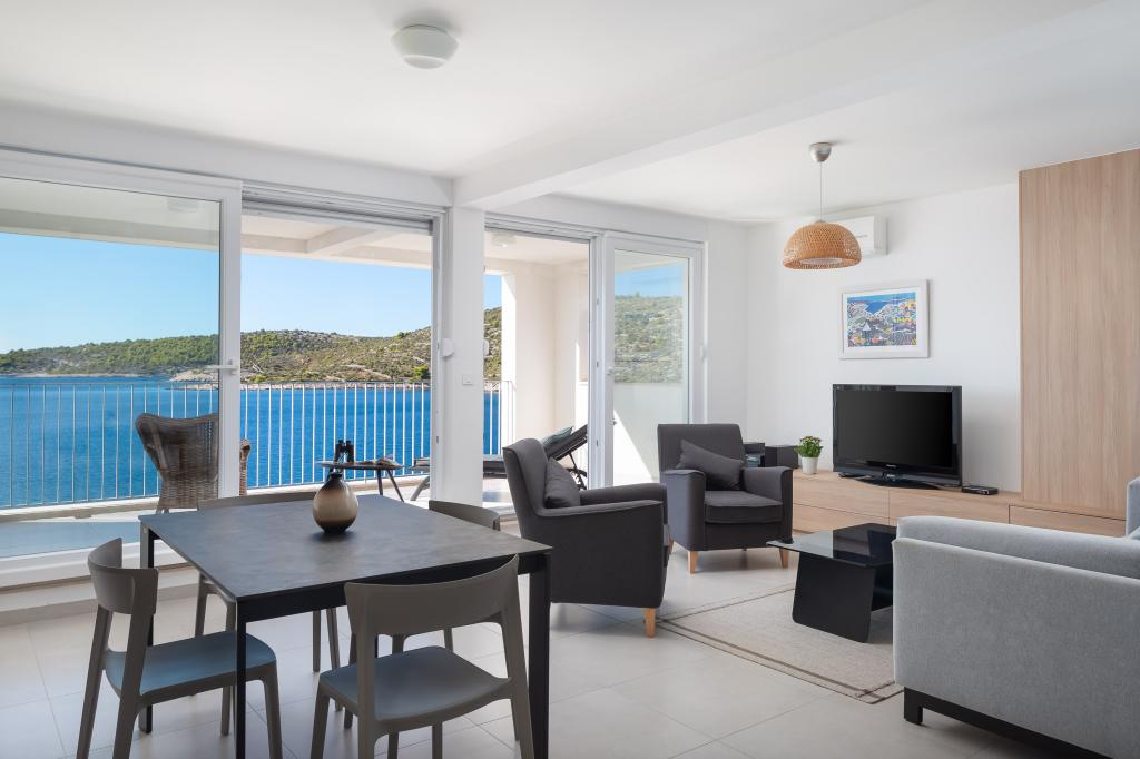Villa CapeCarol położona jest w samym sercu słonecznej Dalmacji, w turystycznej miejscowości Kanica. Ta nowoczesna willa znajduje się tuż przy wybrzeżu i oferuje wspaniały panoramiczny widok na krystalicznie czyste morze i otaczającą je nietkniętą przyrodę. Piękna willa CapeCarol o powierzchni mieszkalnej 310 m2 oferuje swoim gościom prywatność pobytu na trzech w pełni wyposażonych piętrach-apartamentach. Zarówno elewacja, jak i wnętrze domu charakteryzują się czystym, nowoczesnym stylem, który nadaje willi naturalną, przyjemną atmosferę. Każdy apartament o powierzchni 95 m2 posiada duży salon i kuchnię, 2 sypialnie (1 z podwójnym łóżkiem i 1 z oddzielnymi łóżkami) oraz 2 łazienki. Każdy apartament posiada duży taras z pięknym widokiem na morze. Wyłączne korzystanie z basenu (15 m2) i podwórka/tarasu jest możliwe przy wynajmie apartamentu SeaCarol na parterze. Willa posiada łącznie 3 prywatne miejsca parkingowe, po 1 miejscu na każdy apartament. Istnieje możliwość cumowania mniejszej łodzi.