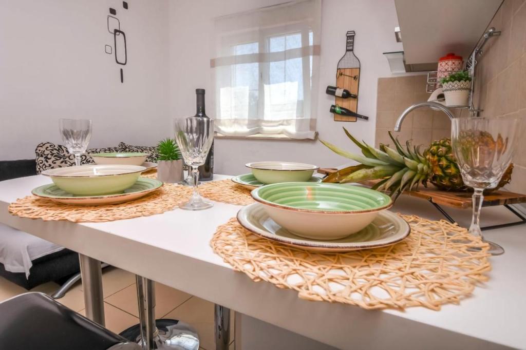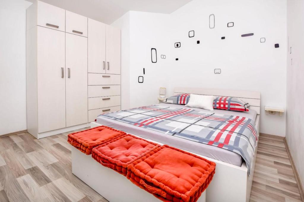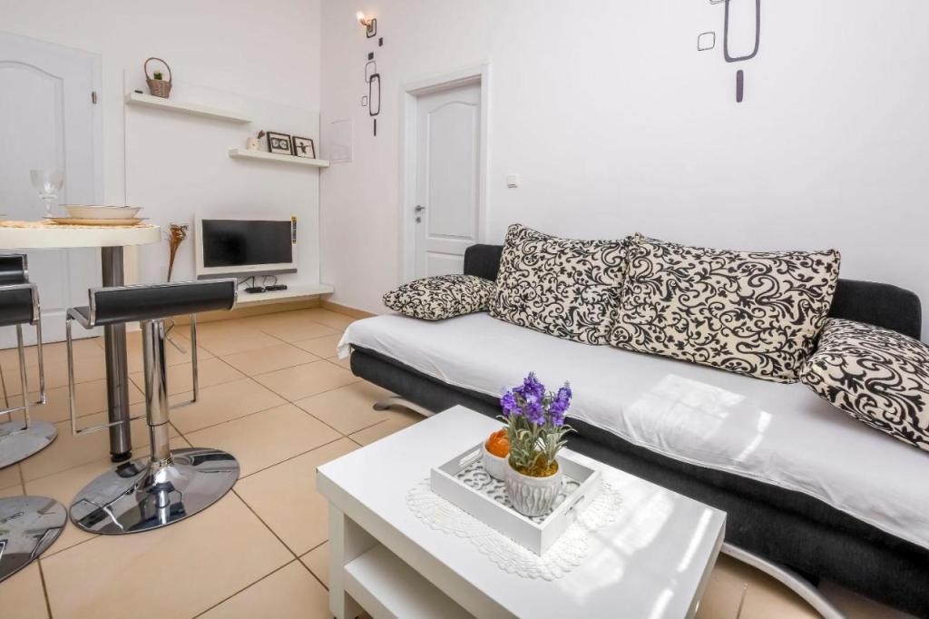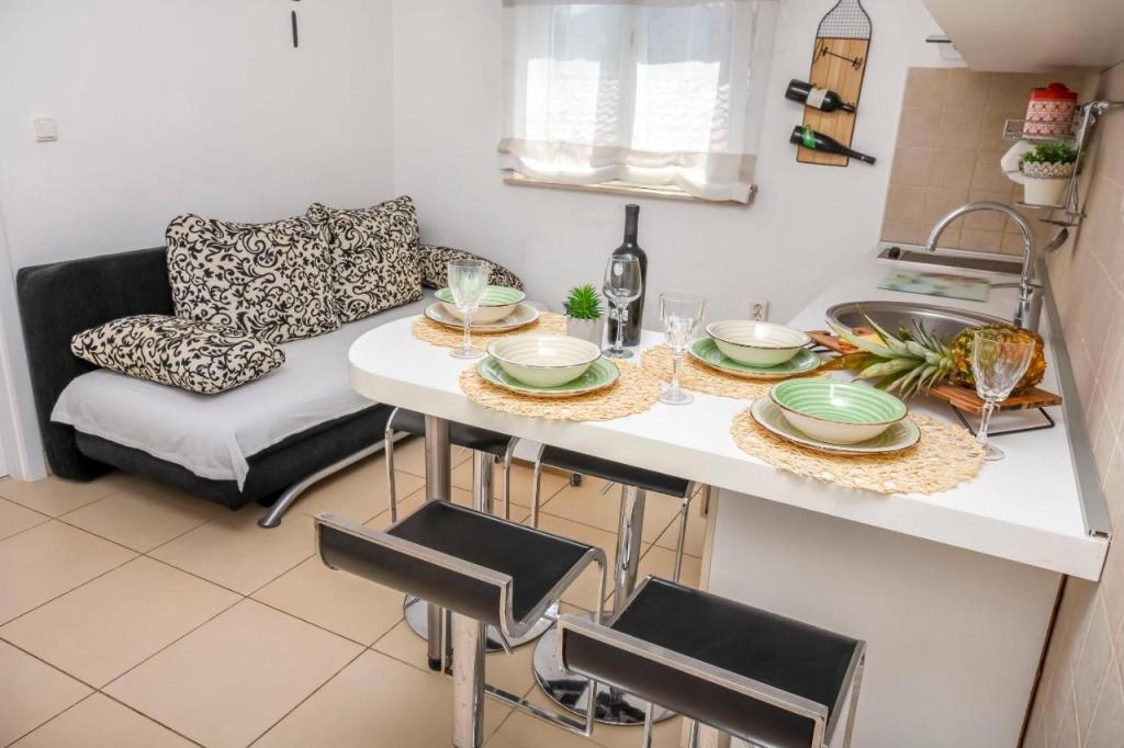 Oferujemy 2 apartamenty z jedną sypialnią, dwa apartamenty z dwiema sypialniami i 1 sypialnię z trzema sypialniami w nowej i luksusowej pozycji, zaaranżowane zgodnie z wymaganiami gwiazdkowymi, w pełni umeblowane i wyposażone. W sypialniach i łóżkach 160200 dla dwóch osób, w salonie 180200 rozkładanych sof z wbudowanym anatomicznym materacem i dodatkowym łóżkiem na życzenie. Ultra nowoczesna kuchnia ze wszystkimi wbudowanymi i innymi urządzeniami. Apartamenty wyposażone są również w sejf, klimatyzację, telewizor LCD, łącze internetowe USB, pralkę w apartamencie właściciela. Łóżeczko dziecięce na życzenie. Zabezpieczone miejsce parkingowe i kotwicowisko dla łodzi. Mamy nadzieję, że poczujesz się komfortowo w naszych apartamentach, zauważając, że wszystkie meble są anatomiczne i wykonane na zamówienie.