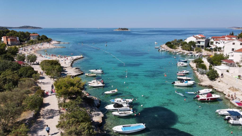 Obiekt położony jest w odległości 20 metrów od plaży i jednego kilometra od centrum miasta. Plaża jest odpowiednia dla dzieci, a obiekt ma dwa mieszkania. Jeden z czterech osób (dwie sypialnie) oraz drugi dla sześciu osób (trzy pokoje). Każdy apartament posiada widok na morze. On jest spokojny i jest idealny dla osób niepełnosprawnych. W domu jest grill, który może być stosowany w każdej chwili i miejsca parkingowe