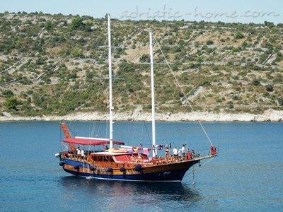 Apartamenty Kanica znajdują się w małej wiosce Kanica, w pobliżu miasta Rogoznica, Primosten i turystycznego centrum Sibenik. Kanica Bay jest uważana za jedną z najpiękniejszych na Adriatyku. Czyste morze i odległość od codziennego hałasu Kanica sprawia idealne miejsce na spokojny wypoczynek. Apartamenty Kanica są zaledwie 5 metrów od morza, z prywatnej plaży. Mieszkanie na parterze z kuchnią i jadalnią, łazienka i WC. Na pierwszym piętrze znajdują się 2 apartamenty, każdy z kuchnią, łazienką i tarasem z widokiem na morze. Kuchnie są w pełni wyposażone (kuchenka, lodówka, zamrażarka, naczynia i sztućce).