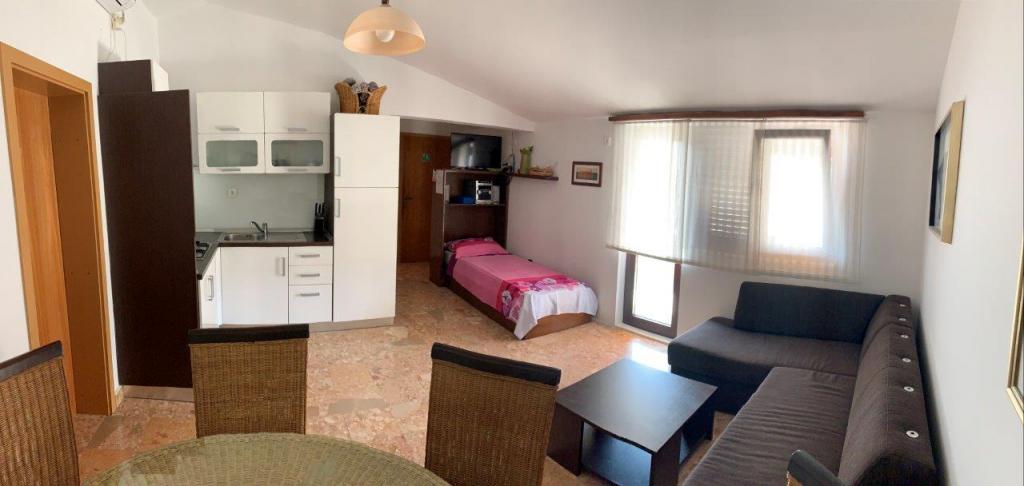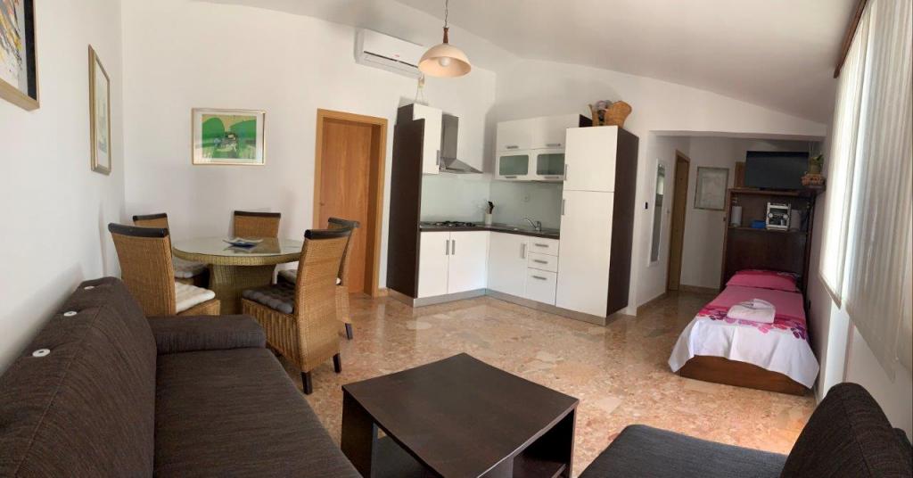 W pełni umeblowane mieszkanie w spokojnej części Rogoznica, 30 metrów od plaży z widokiem na morze. Odległość od centrum miasta wynosi 1000 metrów.